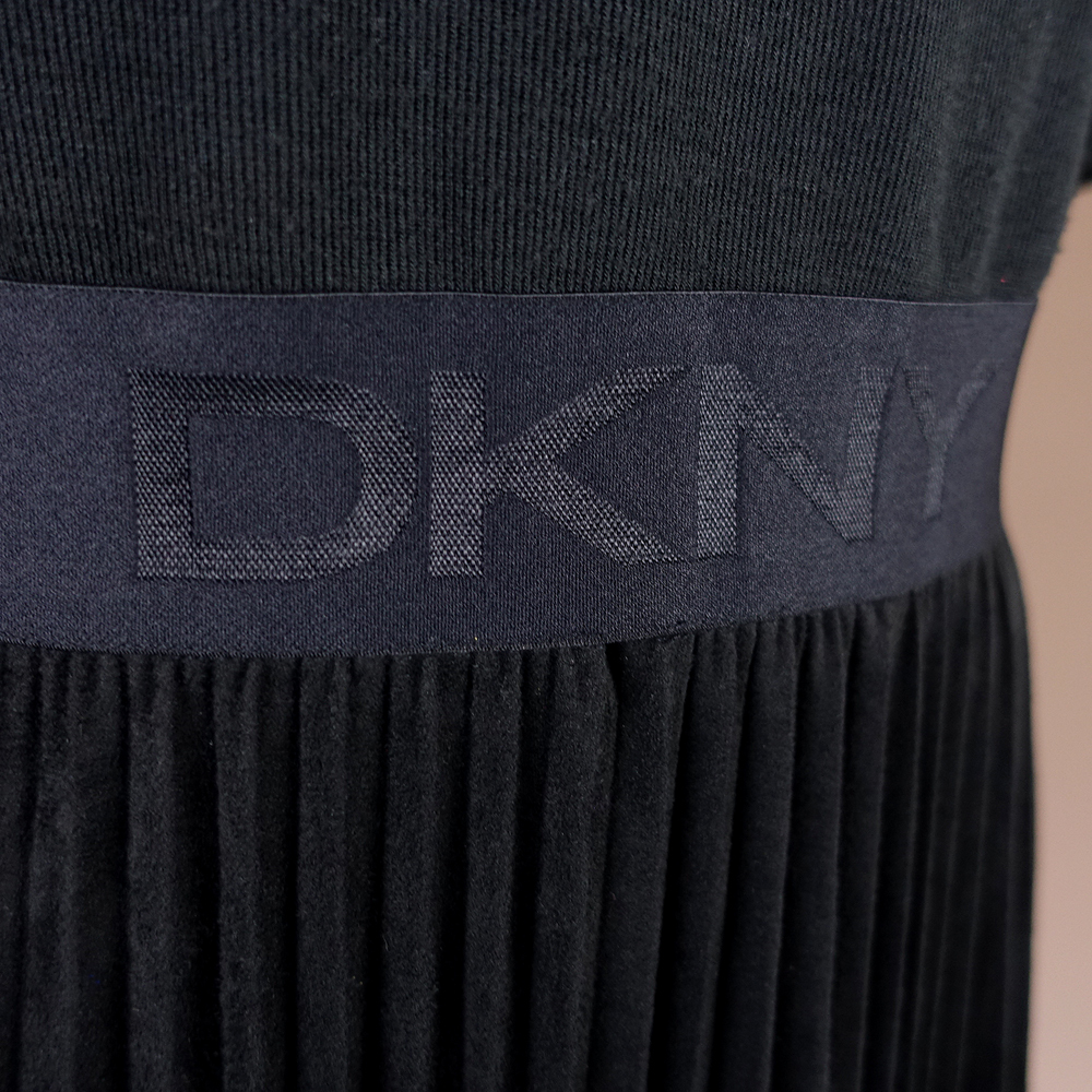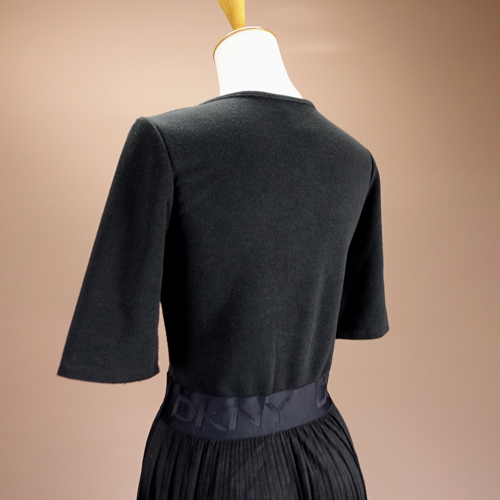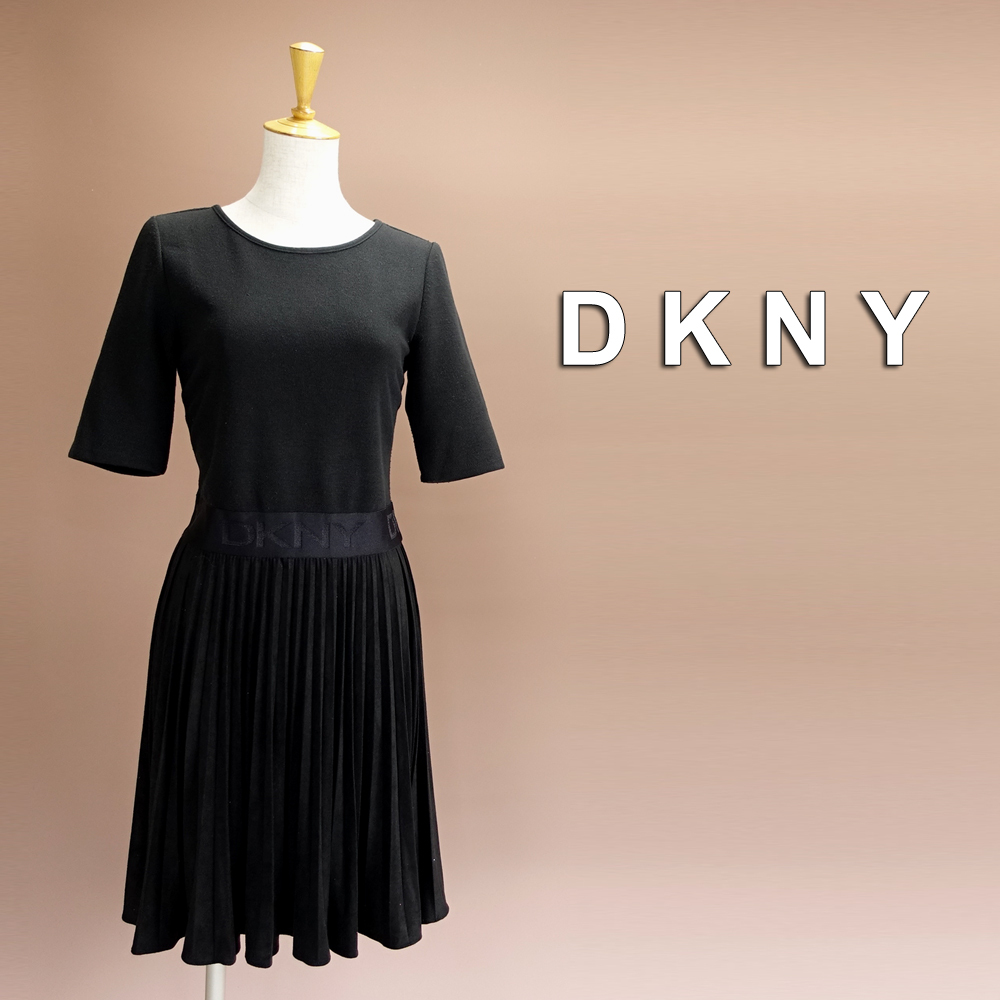 新品 DKNY 6/11号 ダナキャラン 黒 プリーツ ワンピース パーティドレス 半袖 ブラック 結婚式 二次会 披露宴 お呼ばれ 通勤 華48X2301