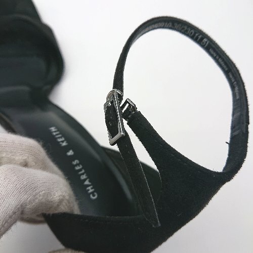 ◇ CHARLES & KEITH ピーンヒール、オープントゥ、ストラップ調節可能 パンプス サイズ36 ブラック レディース E