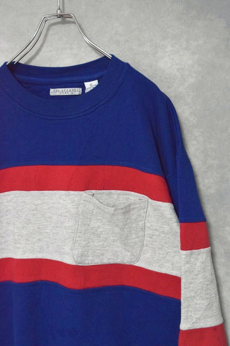 【 90s 胸ポケ付き 】スウィッチパターン スウェットシャツ / size L / 90年代 プルオーバー クレイジーパターン ブルーxグレー