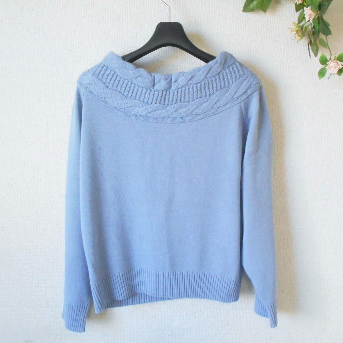 【ポイント】オリビアのレディース用セーターになります。お色は水色系で秋冬を中心に着ていただけるお品です。