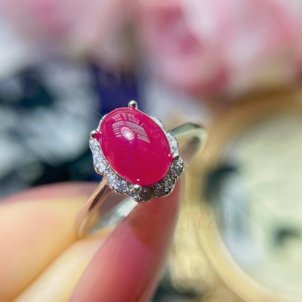 女性のためのナチュラルミャンマールビーリング、6x8mm、スターリングシルバー925