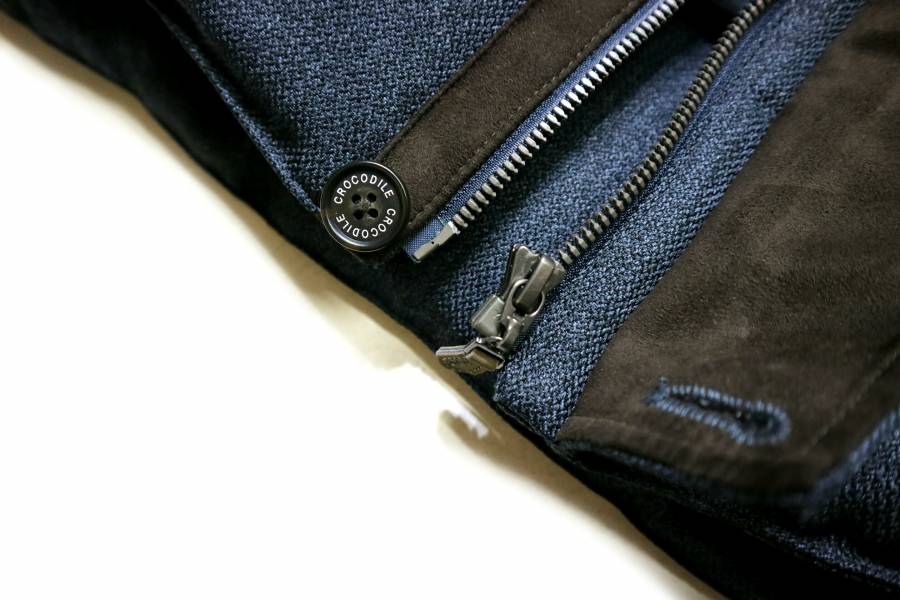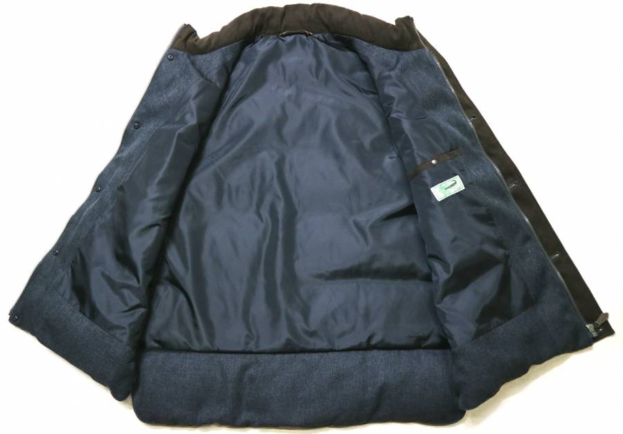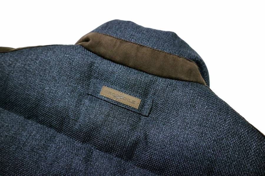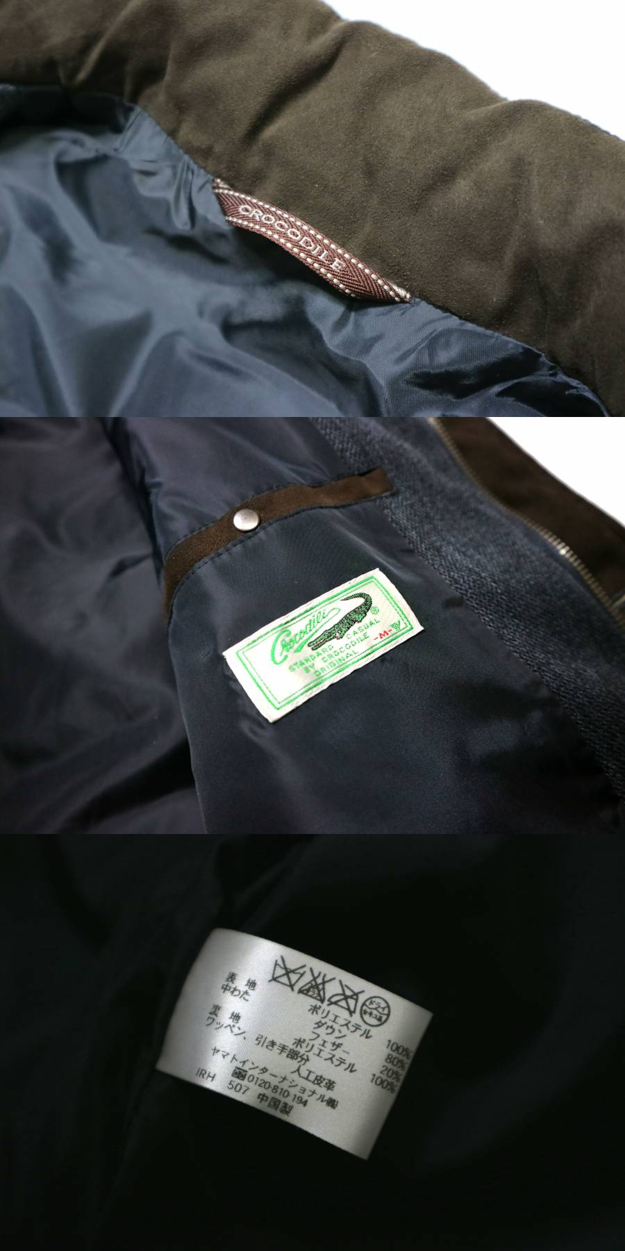 ・見た目がウール素材のようですが扱いやすいポリエステル地、フェイクスエードの別布と程よく厚手のダウン使用で雰囲気が良く暖かです。クロコダイルのやや厚手のダウンベストです。