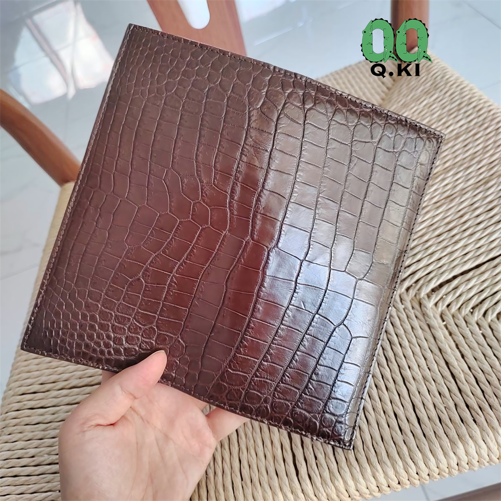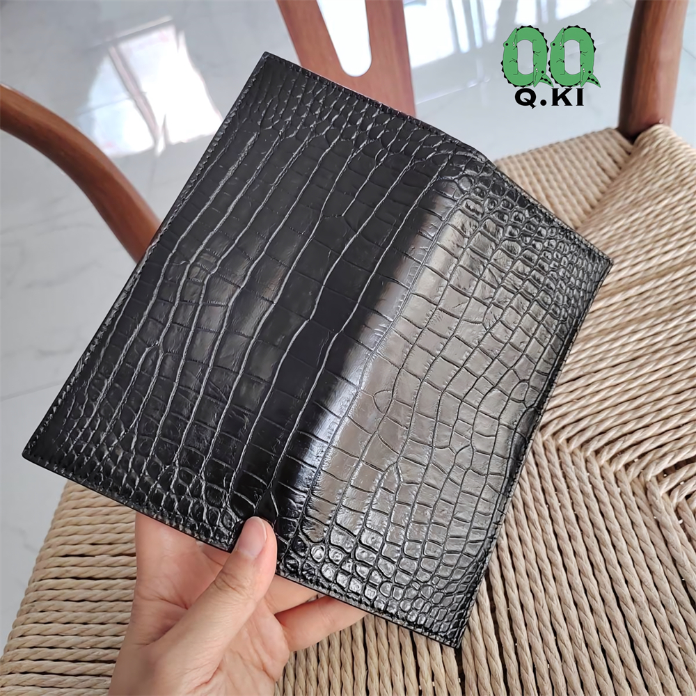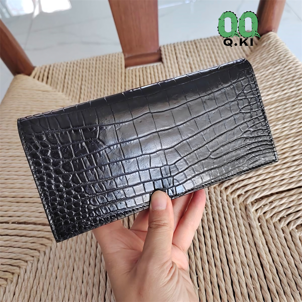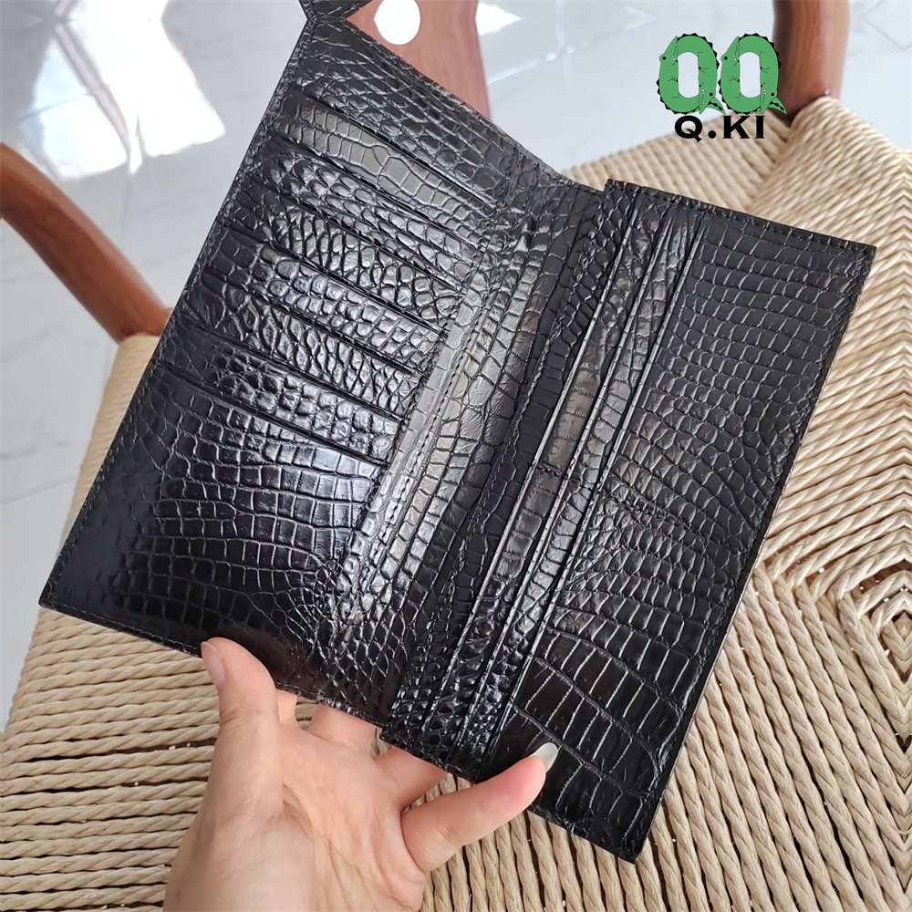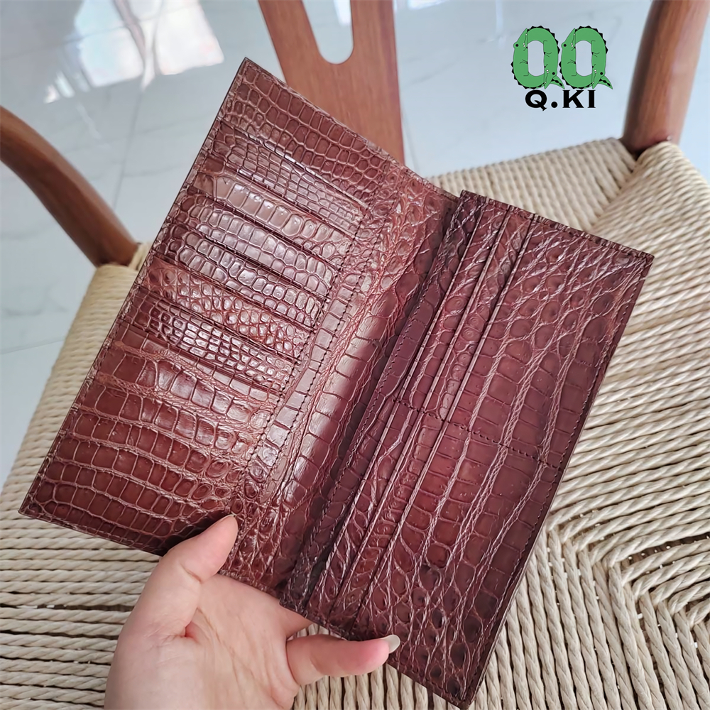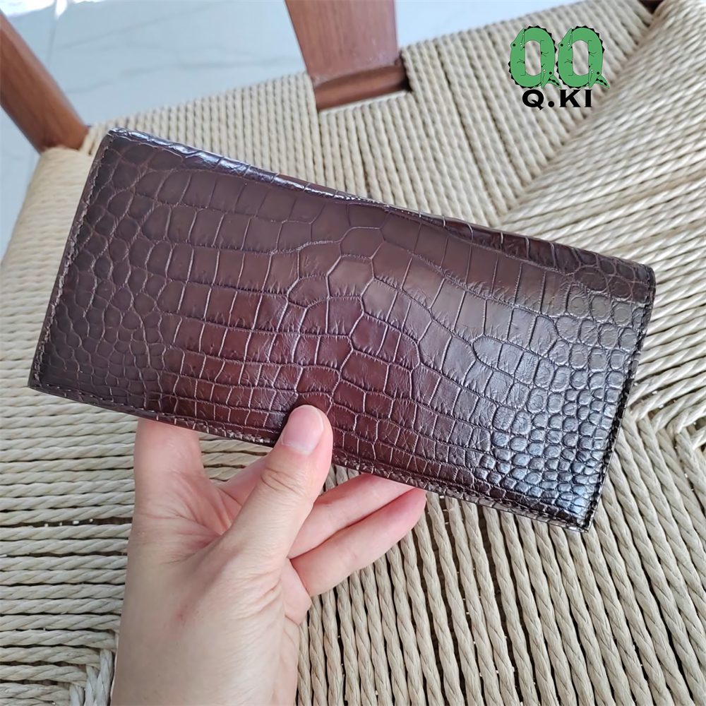 ワニ革 本物保証 クロコダイルレザー 【無双仕上げ】長財布 二つ折り仕様 内外総ワニ革 一枚革 ビカードケース 黒/焦げ茶