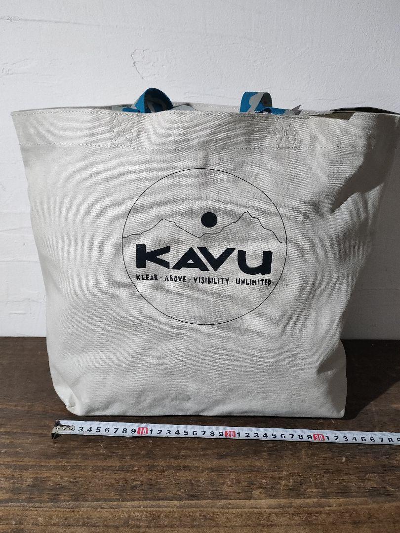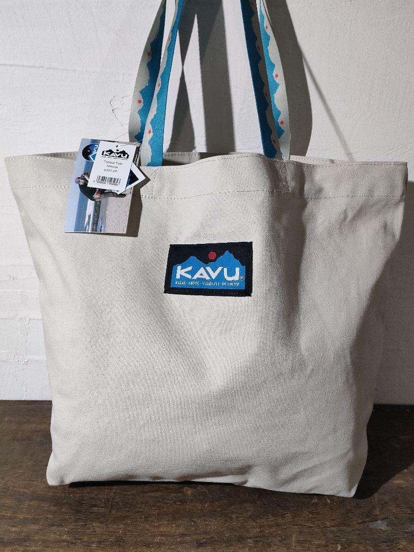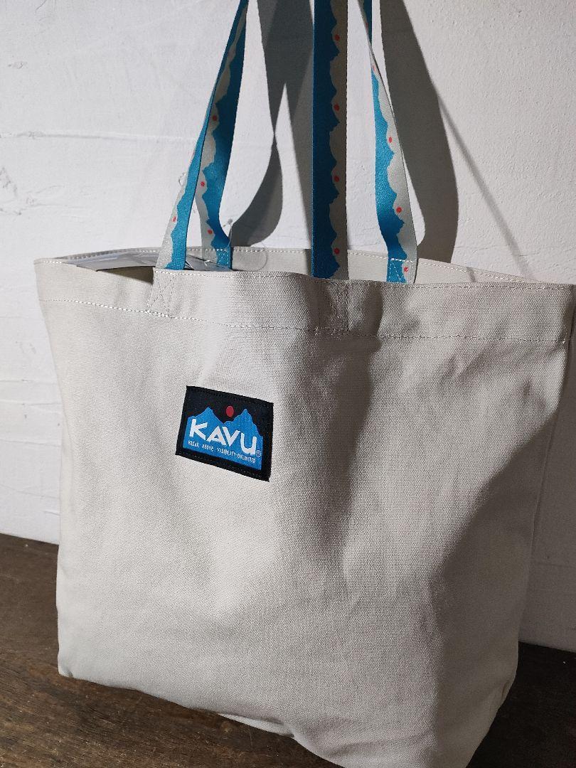 ◆大きめなKAVUのブランドロゴとシンプルな造りが特徴のトートバッグです。女性の普段使いや、キャンパーの方のギア収納におすすめです。