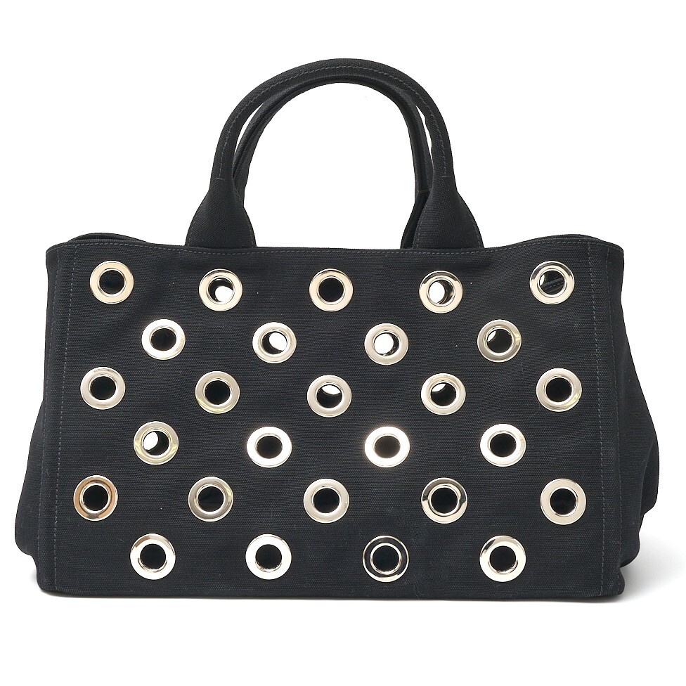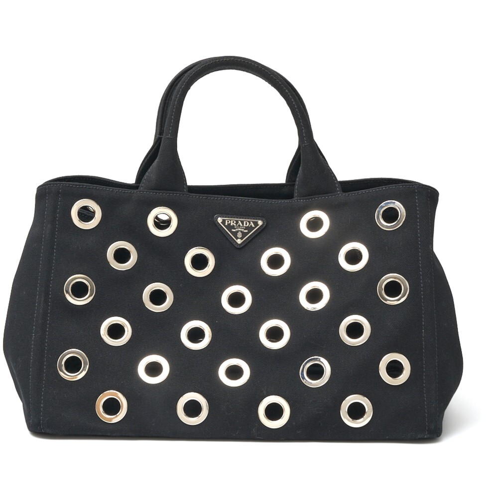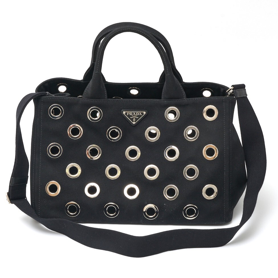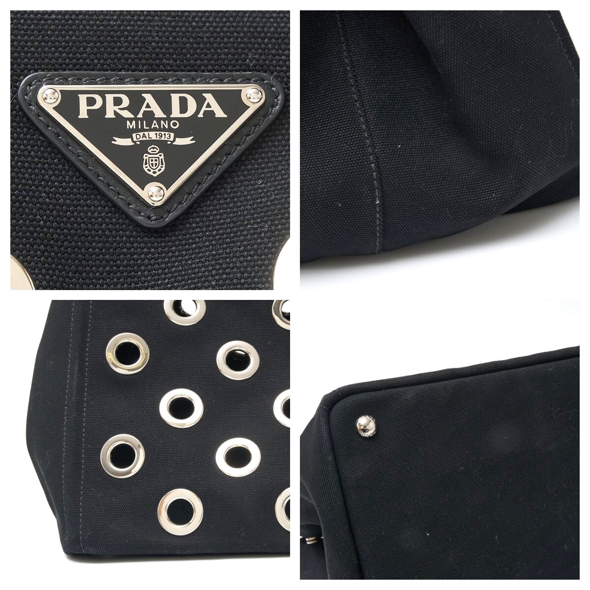 PRADA プラダ カナパ グロメット 1BG642 2WAY ハンド ショルダーバッグ キャンバス ブラック×シルバー金具 カジュアル レディース