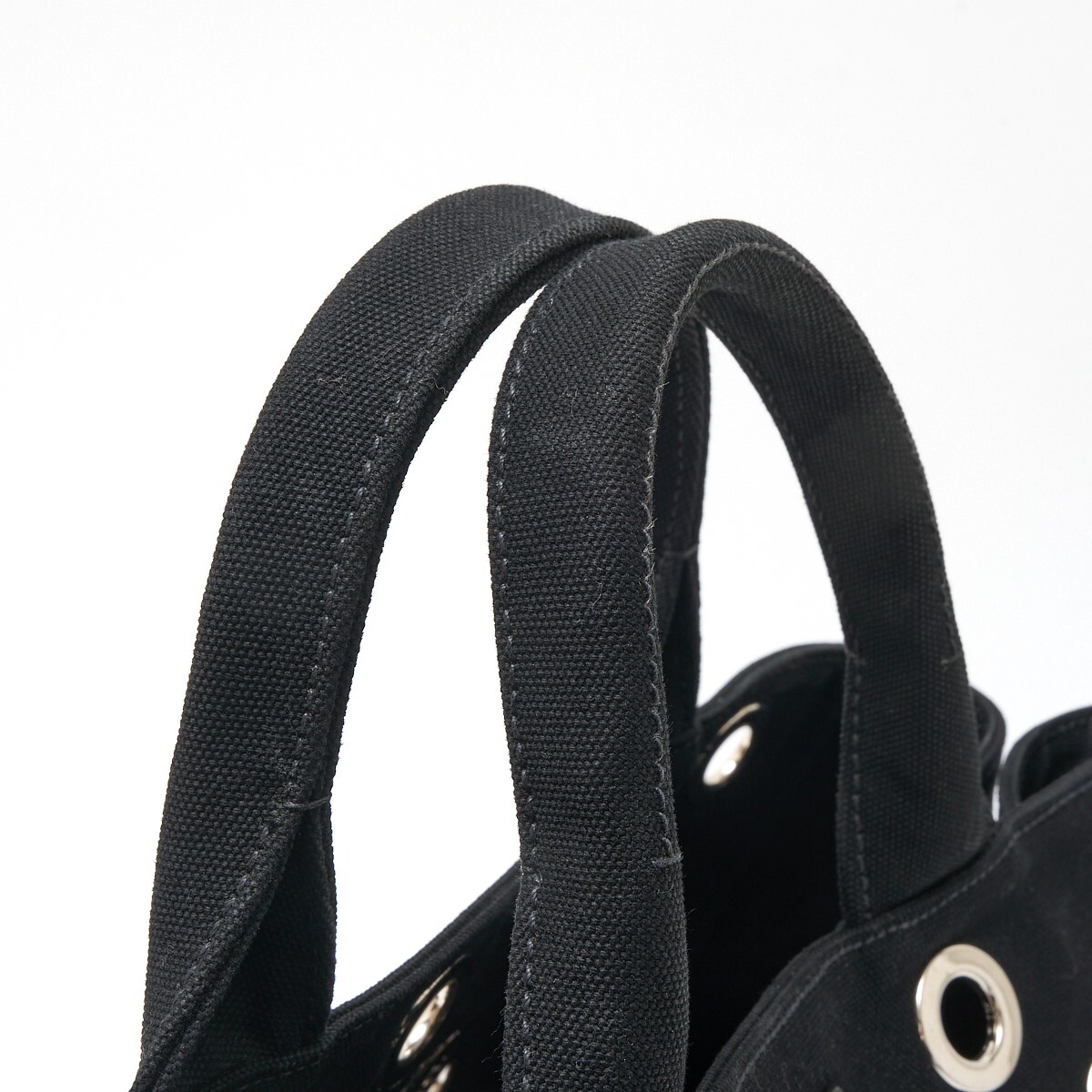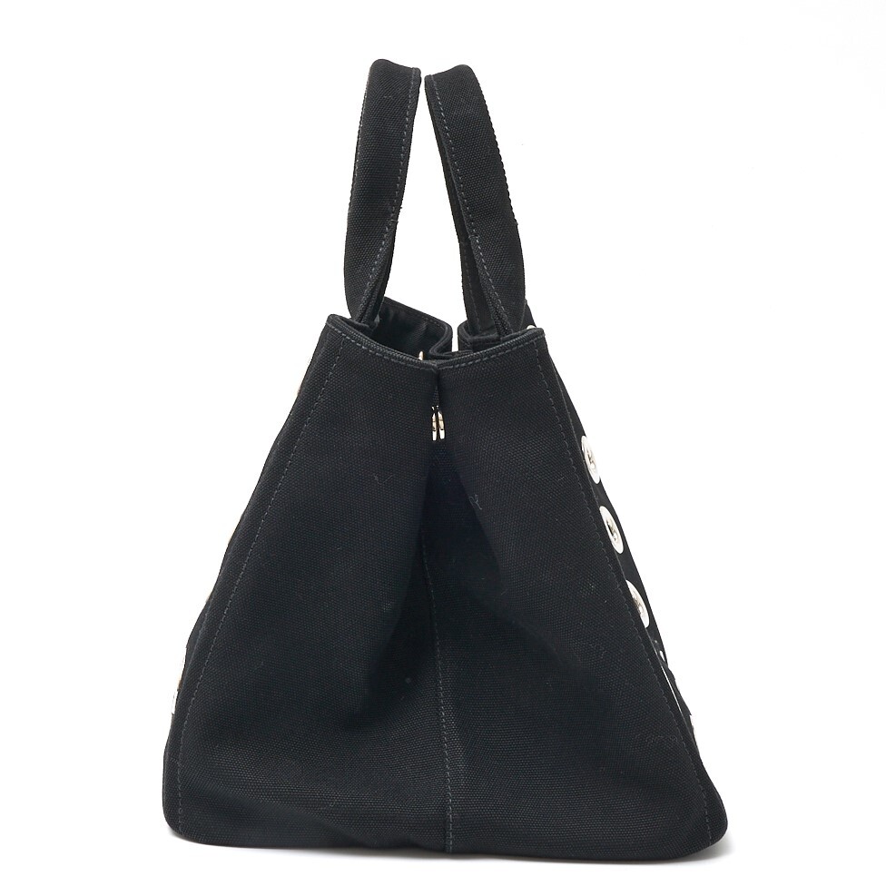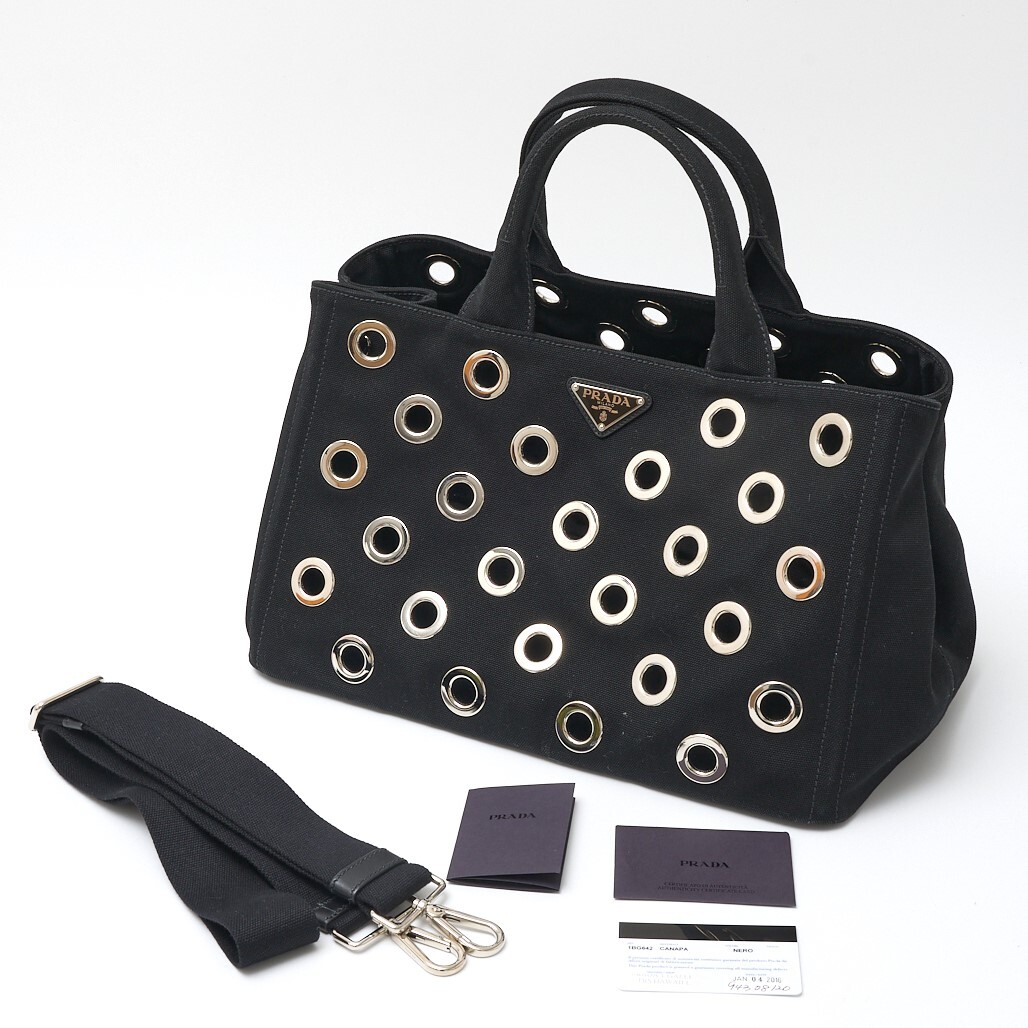 PRADA プラダ カナパ グロメット 1BG642 2WAY ハンド ショルダーバッグ キャンバス ブラック×シルバー金具 カジュアル レディース