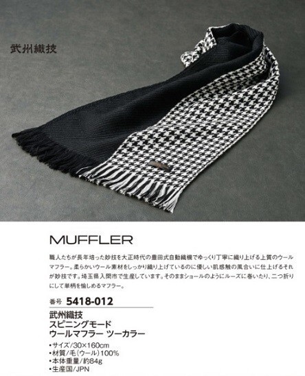 【商品番号】 5418-012 【商 品 名】 武州織技 スピニングモード ウールマフラー ツーカラー |
