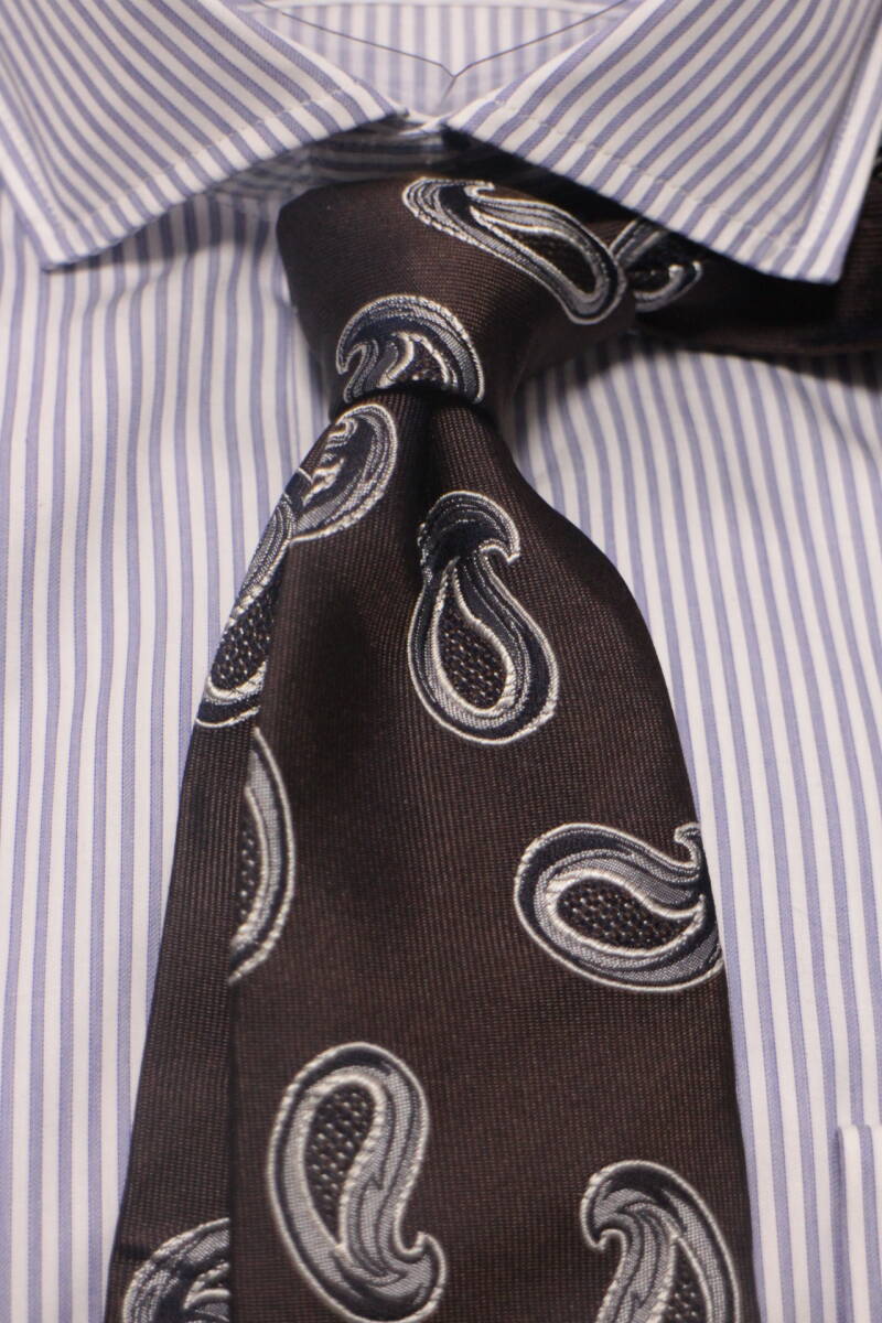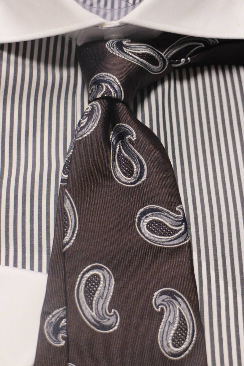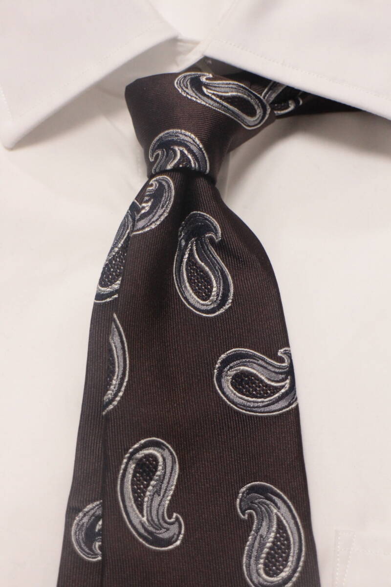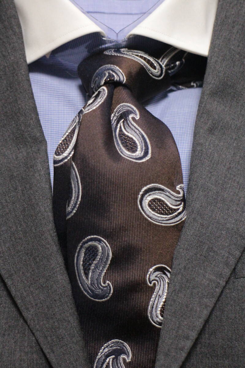 ユナイテッドアローズ新品ネクタイ超シック艶ブラウン*シルバー*グレー小紋ジャガード織ペイズリー柄フルハンドメイド
