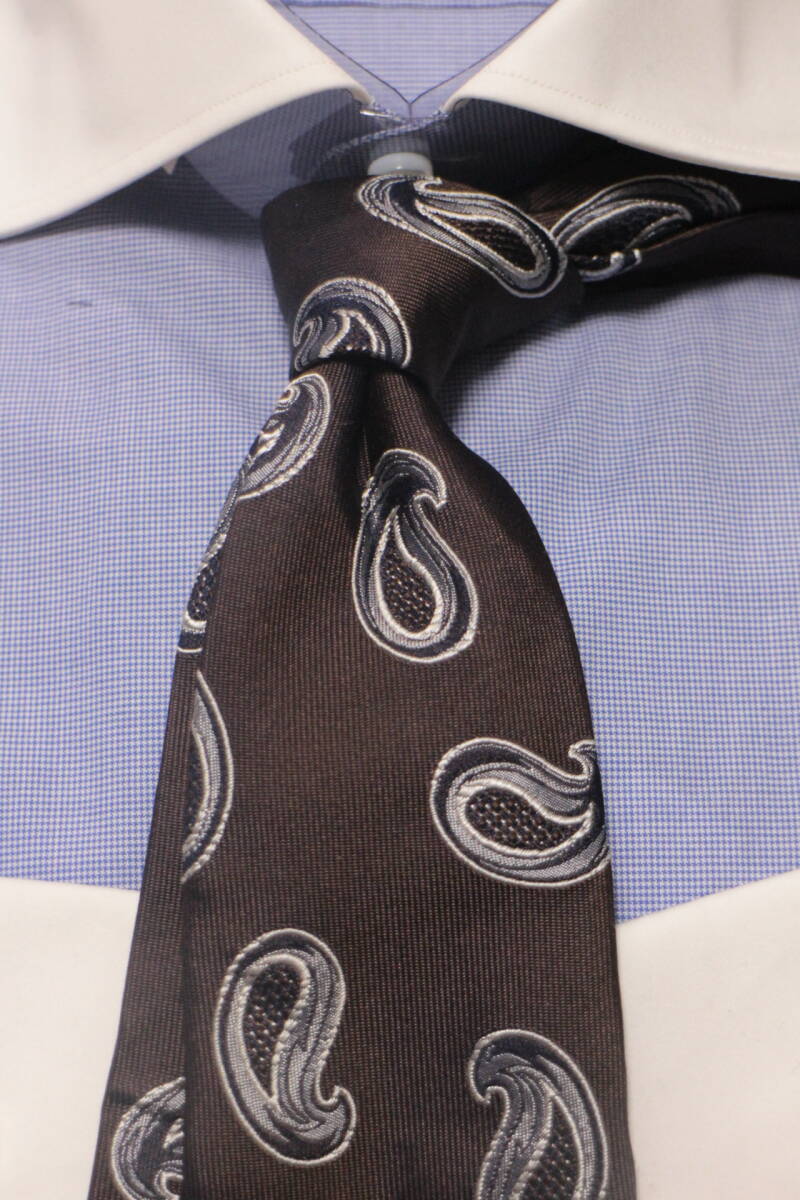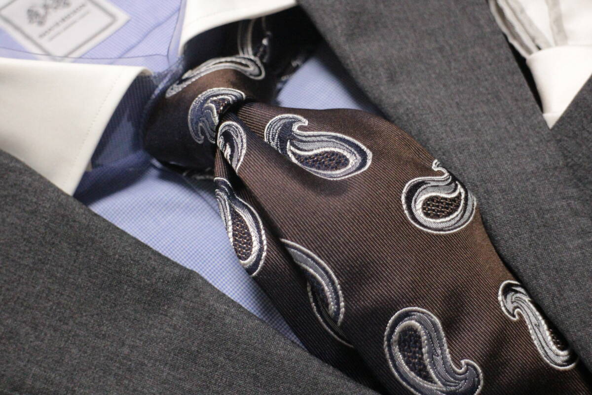 ペイズリー小紋を、躍動感たっぷりにあしらった、モダンクラシカルな小紋タイ。