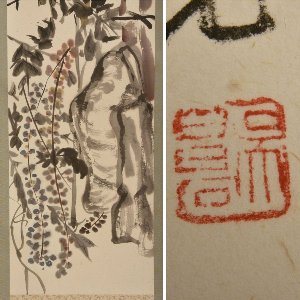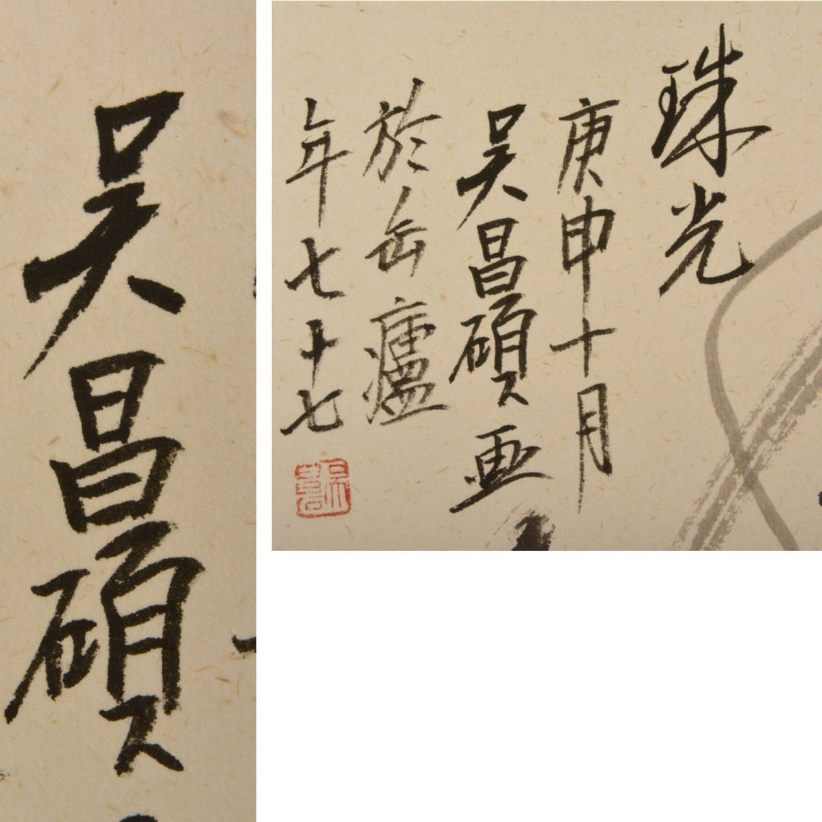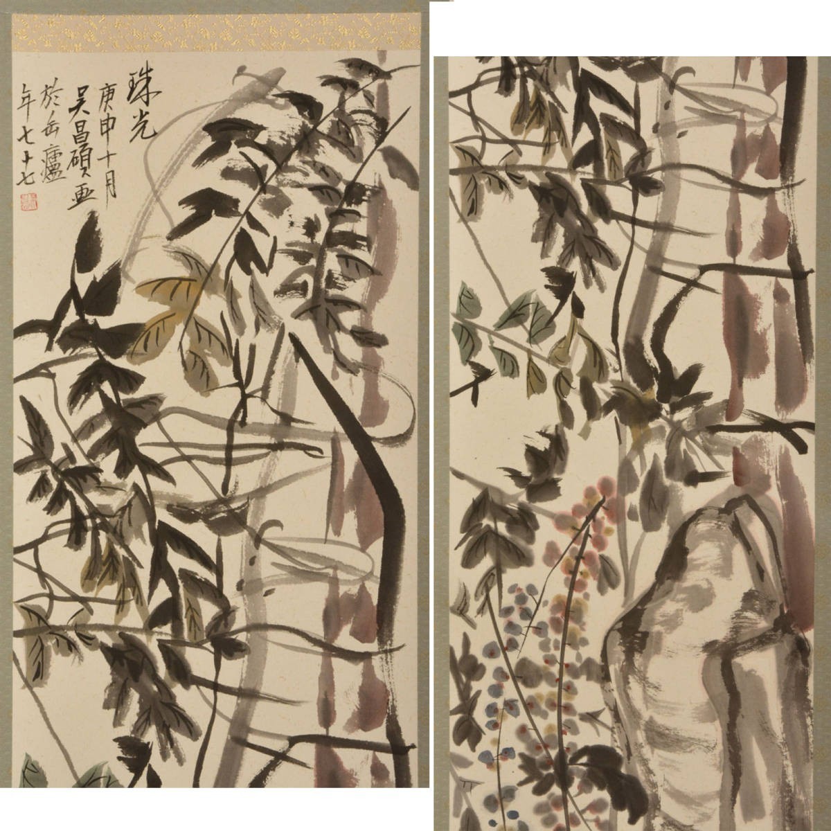 T06711 呉昌碩 草花画賛 掛軸