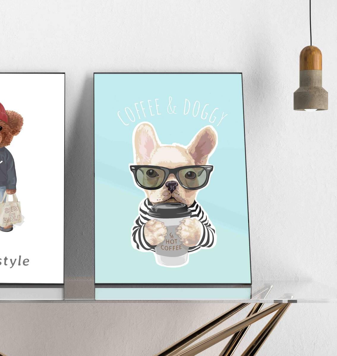 かわいい フレンチブルドック モダン 北欧 ポスター,ボストンテリア DOG ドッグ アニマル おしゃれ フレーム 額縁も有♪
