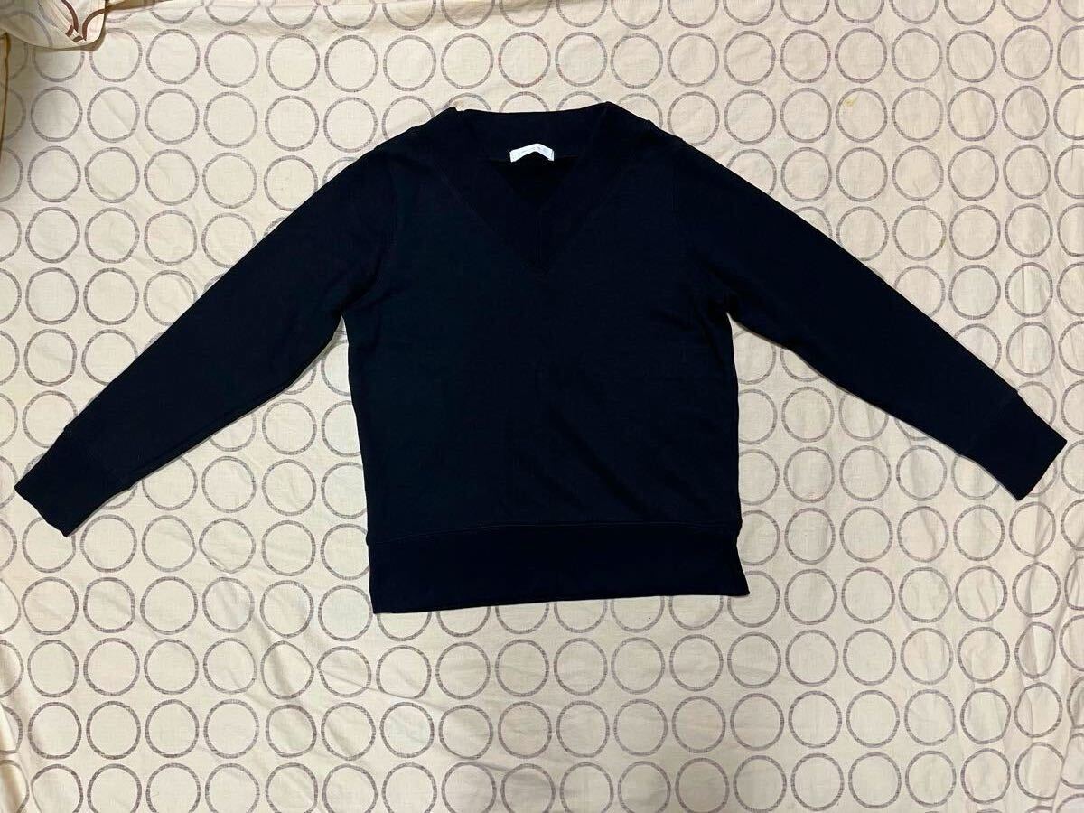 シンプルデザインのレディースVネック長袖スウェットトレーナーです。