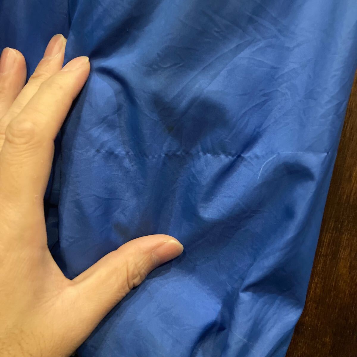 Champion ナイロンスタジャン アワードジャケット 90s カレッジ 青 USA古着 アメリカ古着 ナイロンブルゾンです。