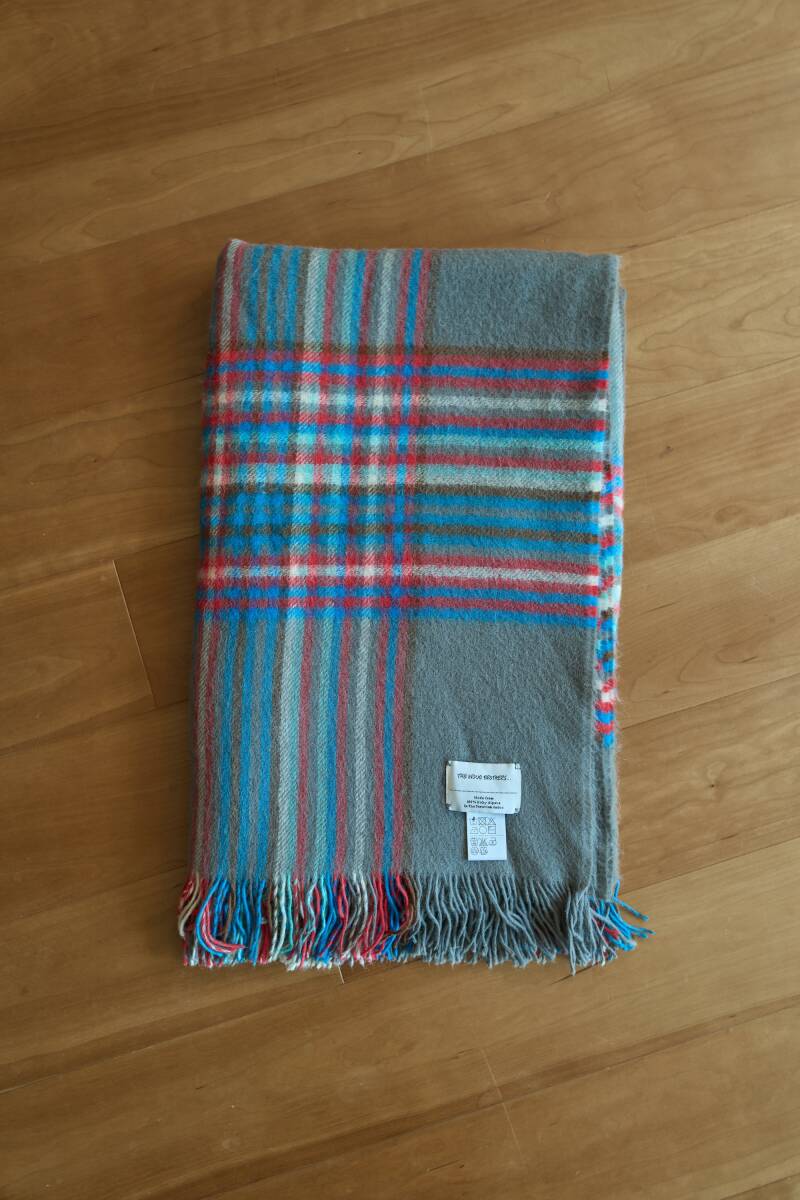 希少 THE INOUE BROTHERS イノウエブラザーズ ベイビーアルパカ 大判ブランケット 約200cm x135cm グレーチェック