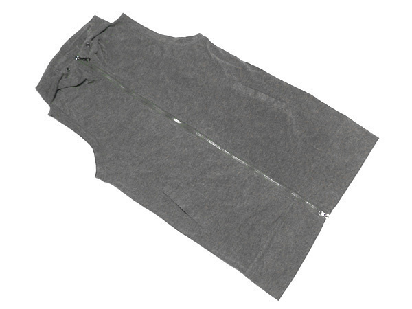 新品 送料無料 ロング ニット ベスト ダブルジップ フード グレー系 M