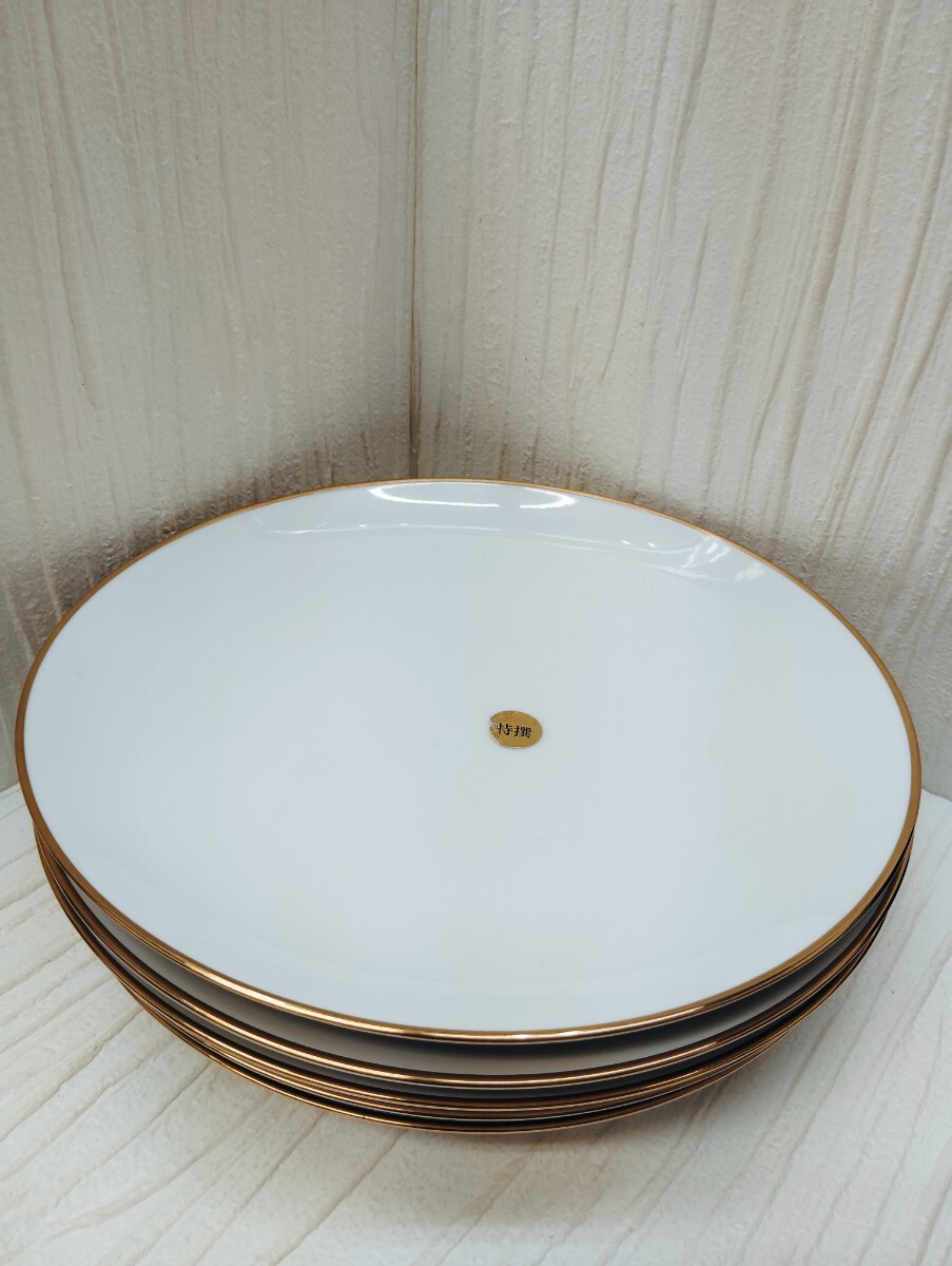 白い皿 未使用 特撰 5枚 自宅保管品 箱なし 金縁