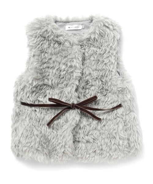 新品 THE SHOP TK ガールズ エコファーベスト  ライトグレー   14(140cm) 定価4389円