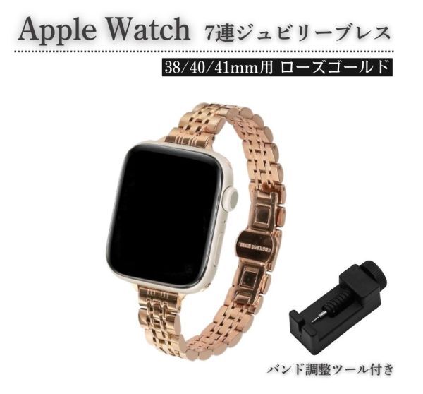 Apple Watch レディース ジュビリーブレス 7連 交換 スリム ベルト 7/6/5/4/3/2/1/SE 38mm 対応 コマ調整器付 ローズゴールドE583送料無料