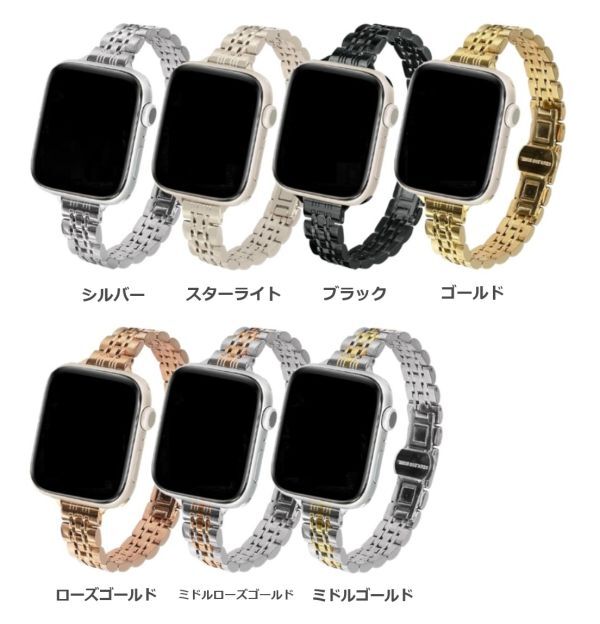 Apple Watch レディース ジュビリーブレス ステンレス 7連 交換 スリム ベルト 7/6/5/4/3/2/1/SE 38/40/41mm 対応 コマ調整器付