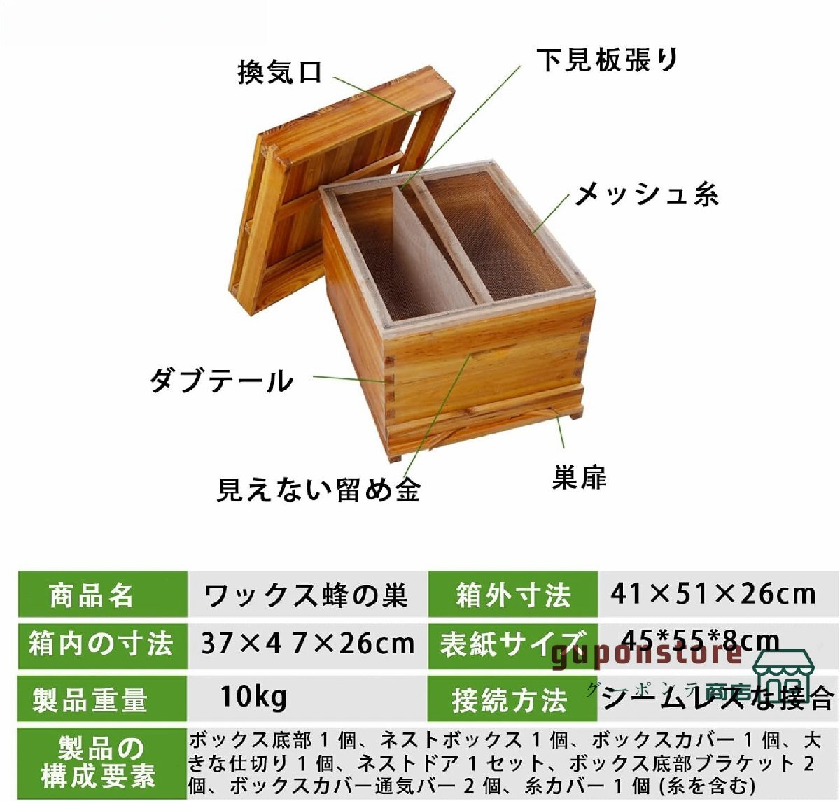 蜂蜜蜂の巣箱 ミツバチの巣箱 養蜂用具 ワックスを煮る/乾燥巣箱 蜂蜜箱 杉材 蜂ハイブ ハチミツの家養蜂箱キット 養蜂器具 防湿 防水