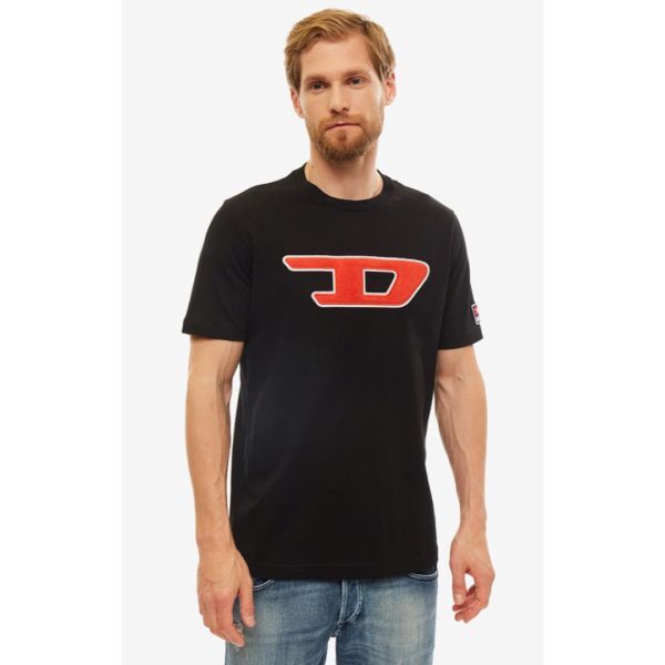 DIESEL Tシャツ S 00SY7A 0CATJ Dロゴ プリント ブラック ディーゼル