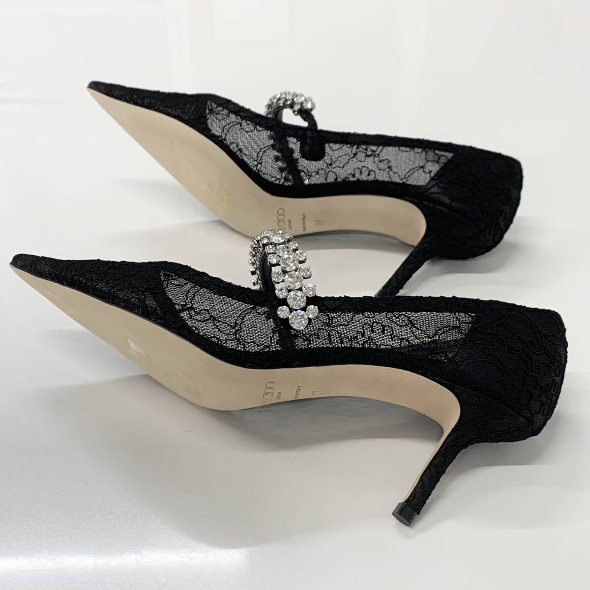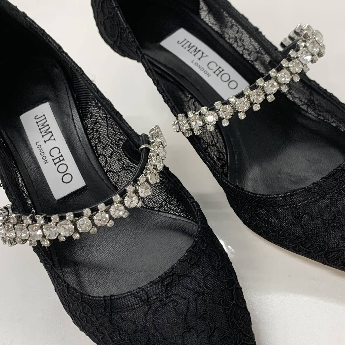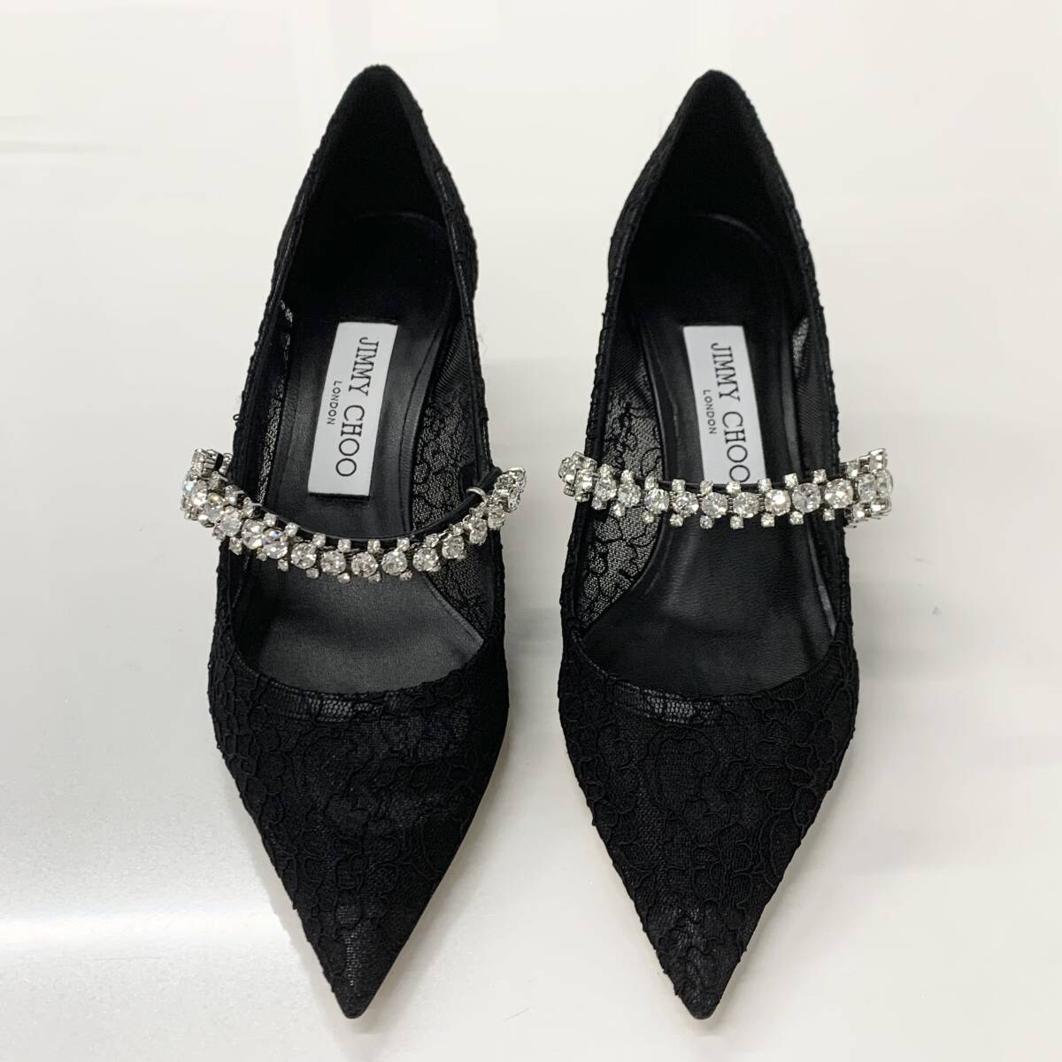 M11095 ジミーチュウ レース ビジュー ストラップ パンプス ブラック
