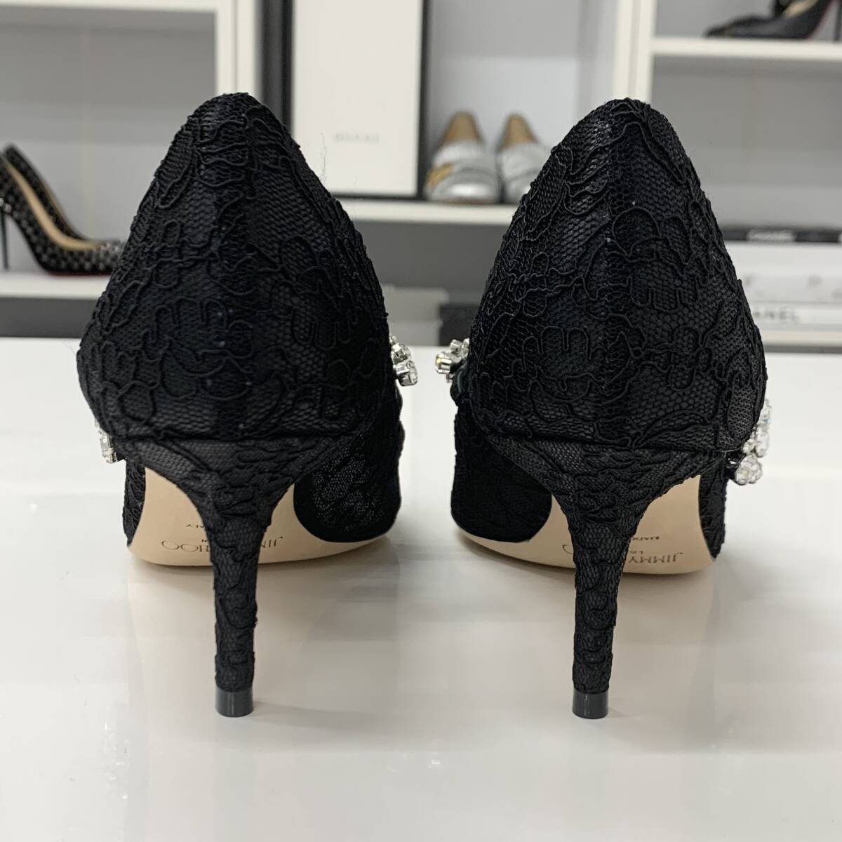 ジミーチュウ レース ビジュー ストラップ パンプス ブラック