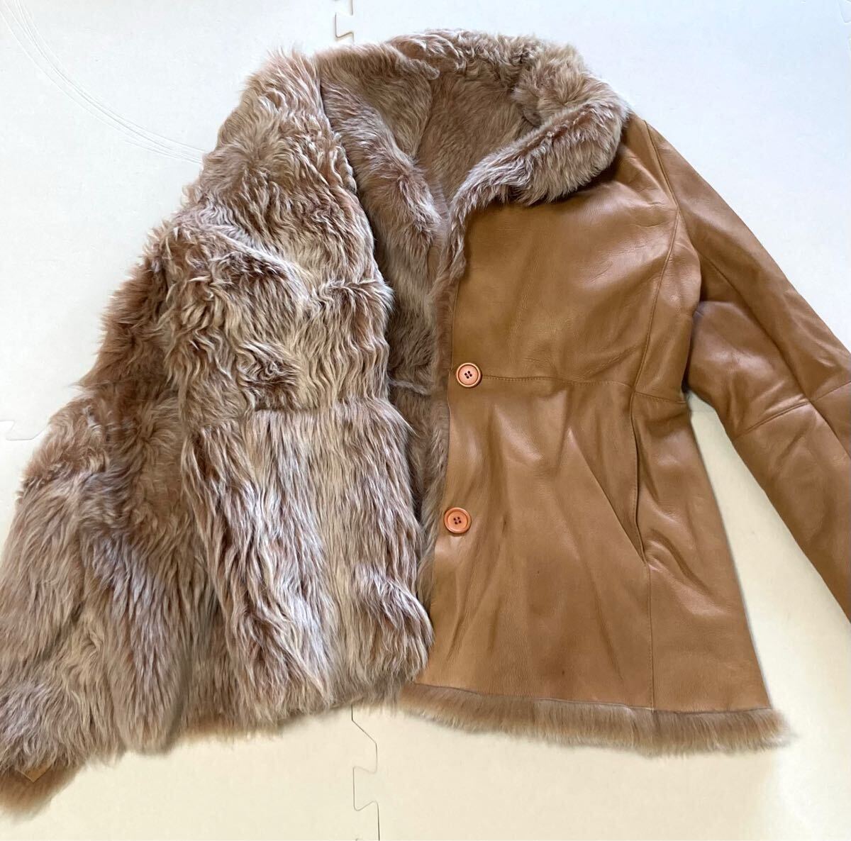 このムートンコートは高品質なレザーで作られており、内側には柔らかいファーが施されています。これにより、保温性が高く、寒い季節にも最適です。
