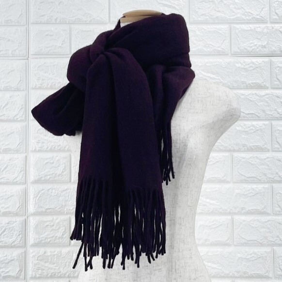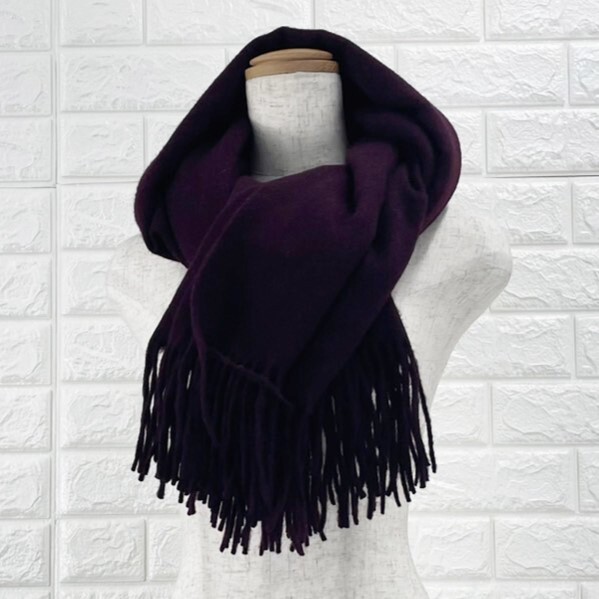 【A2544】AT ストール フリンジ付き ワインレッド レディース エレガント カジュアル 秋冬 186×73cm