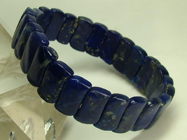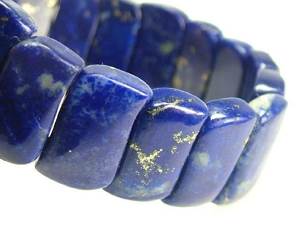 | ★商品説明★ | 環周(内):約160mm ラピス1Pサイズ:約14×8×4.5mm 重さ:23.3g 青色が綺麗なブレスレット。 出品物は鮮やかな群青の輝きの中に金紛(黄鉄鉱)が混じっている上質ラピスです。 ●ラピスは古くから聖なる石として世界中で珍重されました。 古代日本でも(瑠璃=東洋七宝)としての絶大な輝かしい歴史があります。心の曇りや邪念不安をも消し去るというヒーリング効果も持ち合わせると伝えられる神秘の石です。 |