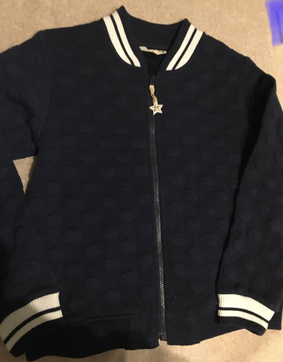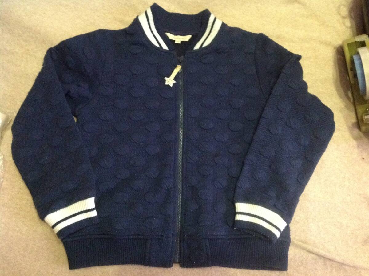 中古 HusHusHドットふくれジャカードニットブルゾン ネイビー(093) 14(140cm)