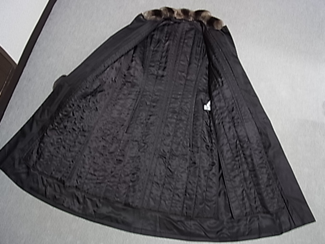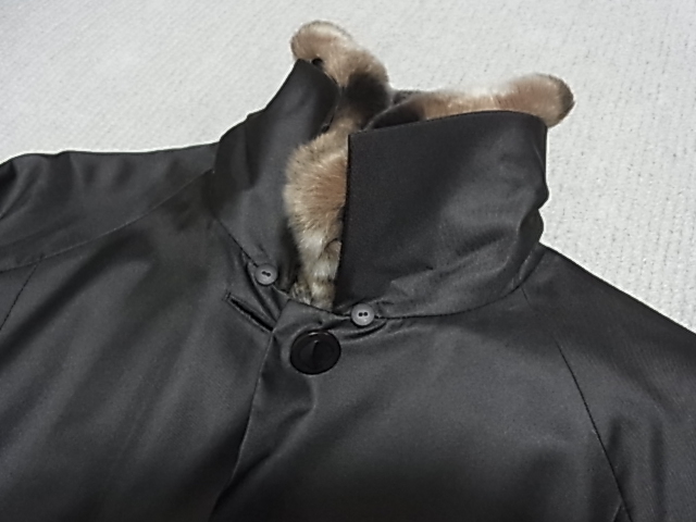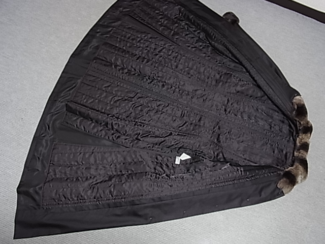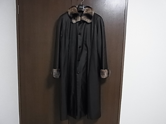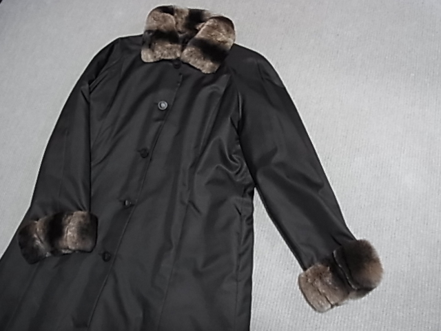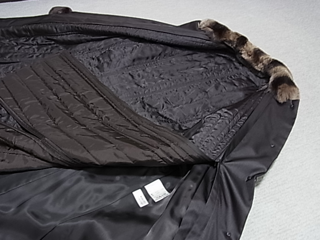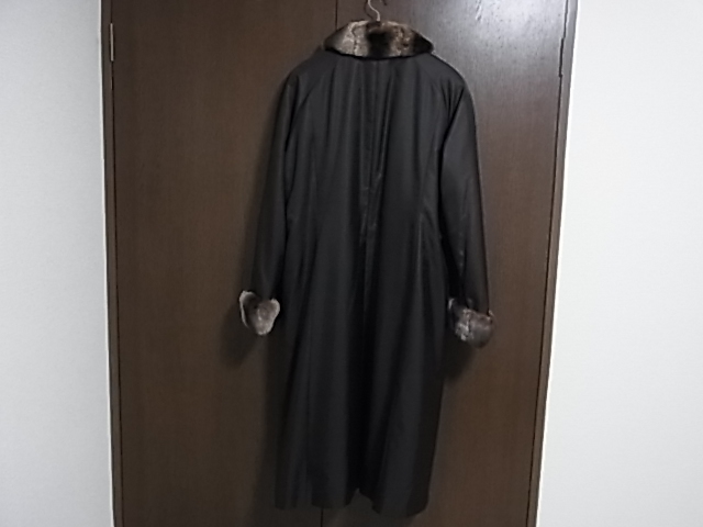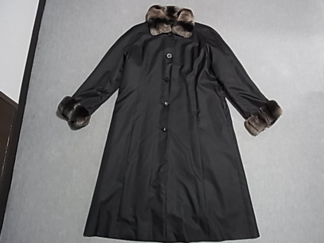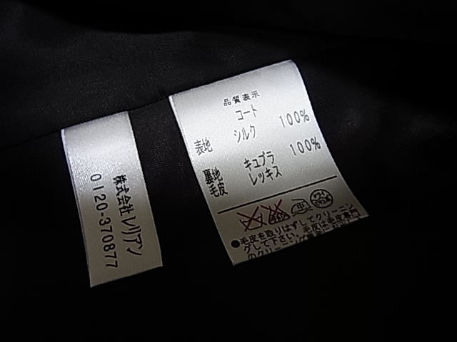 (よく読んでご検討下さい。配送方法は本文記載のみです)ご覧頂きありがとうございます。整理出品です。軽くて暖かいレリアンの高級なコートです。襟と袖毛皮は着脱式でレッキスです。サイズ11。ライナーの取り外しもでき何通りかの着用ができて重宝します。写真そのものです。色は少し光沢のあるシルク生地でダークブラウン系。試着で購入し、その後着る機会なくクローゼット保管品です。購入価格からかなりお安く出品します。厳密には一度人手に渡って新品ではないので、念の為、現状優先としてご理解いただける方のみ落札後ノークレームノーリターンにご理解の方のみ入札お願いします。          宅急便EASY80サイズ予定。定形外不可、送料別途負担でお願いします。確実に取引をしたいので、特に神経質な方、連絡にルーズな方、新規の方、評価の悪い方は入札にご遠慮ください(削除させていただきます)。当方*ペットはいません*喫煙者もいません*わかる範囲で質問にはお答えしますがその際は余裕を持ってください。回答後納得してから入札して下さい。上記了解された方のみ入札下さい。色はモニターにより若干イメージが変わるかもしれませんので不安な方は入札しないで下さい。(素人採寸なので参考までに)平置きで 本体部分総丈約110センチ。肩幅約41センチ。身幅約51センチ。袖約60センチ。※傷、汚れはございませんのでご活用頂けると思います。コート表地シルク100%裏地キュプラ100%毛皮レッキス。ライナー表地キュプラ100%中綿ポリエステル100%。日本製。