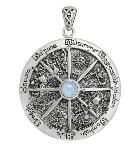 Dryad Design: Sterling Silver Wheel of the Year Pendant with Rainbow Moonstone