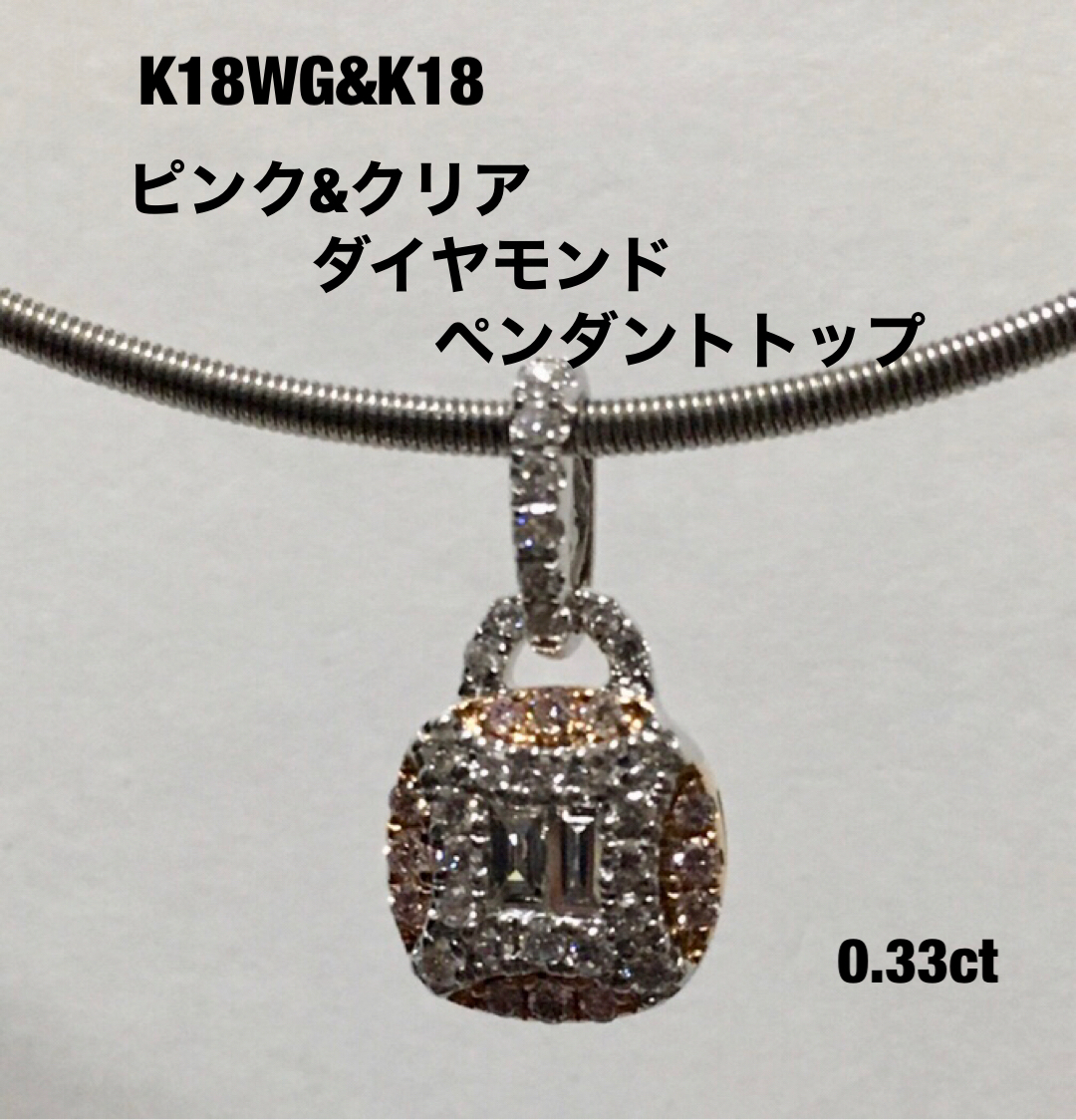 ■K18WG&K18ピンクダイヤ&クリアダイヤペンダントトップ