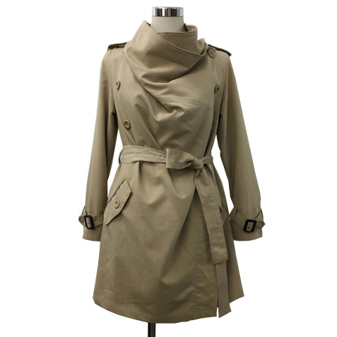 スライ ラング SLY LANG コート トレンチ スタンドカラー ロング ダブル ドレープ タック リボンベルト 無地 長袖 FREE ベージュ
