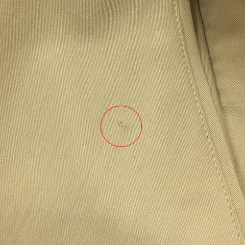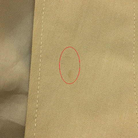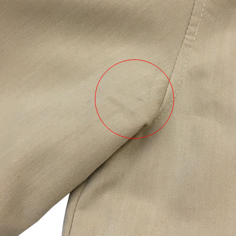 【状態】右脇に黒い汚れがあります。 前裾上の中央に茶色い汚れがあります。茶色い汚れは他にも複数あります。 左ポケットのボタンが取れています。 ご理解の上お買い求め下さいませ。