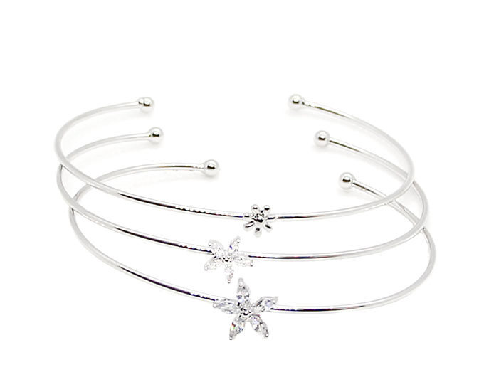 スタイリッシュなシルバーカラーをベースにした三連バングル。バングルにあしらわれた3種のフラワー(花)は1つずつ独立しているので、それぞれ単品バングルとして自由に楽しめます。普段使いはもちろん、デートやお呼ばれ、パーティーなど、華やかなシチュエーションで大活躍。シンプルなデザインなので、他のアクセサリと重ね付けをしてアレンジするのもおすすめです。誕生日プレゼント、お返しギフト、母の日、記念日など、大切な人への贈り物にも最適♪【カラー】 シルバー◆関連ワード◆レディース アクセサリー ブレスレット バングル フラワー お花 ラインストーン クリスマス プレゼント バレンタイン ホワイトデー 結婚式 誕生日 母の日 限定 通販 ギフト 女子会 二次会 お呼ばれ パーティー 掲載画像は出来る限り実物に近づける様に務めておりますが、お使いのブラウザ環境によりカラ-の出方に誤差が出る場合がございます。 こちらの商品は店頭販売も同時に行っておりますので、掲載中でも実店舗に在庫切れの場合ございます。何卒ご了承願います。