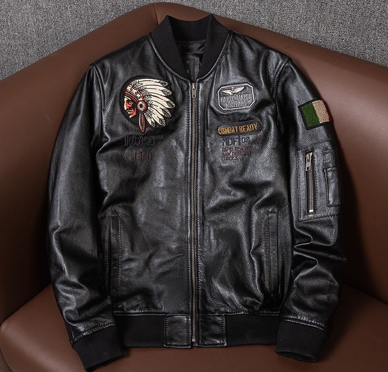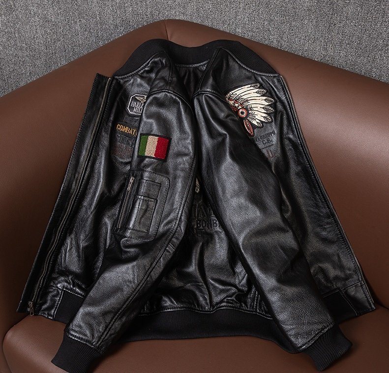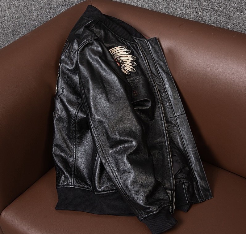 スタジアムジャンパー ライダース 野球服 フライトジャケット 牛革イタリアンレザージャケット 刺繍 バイクウェア ブルゾン S~5XL