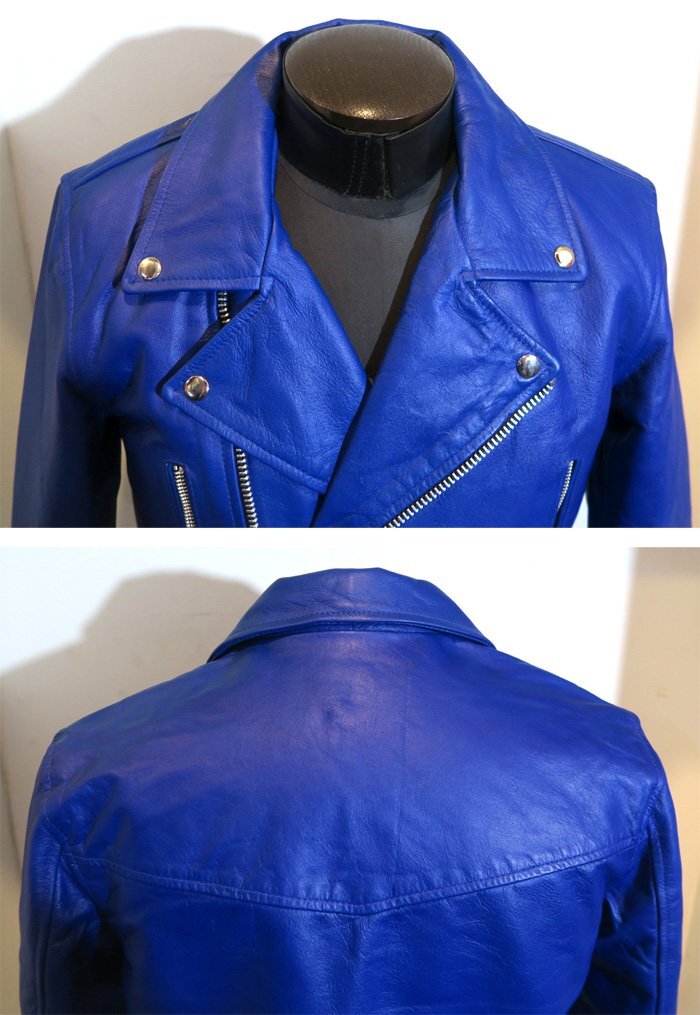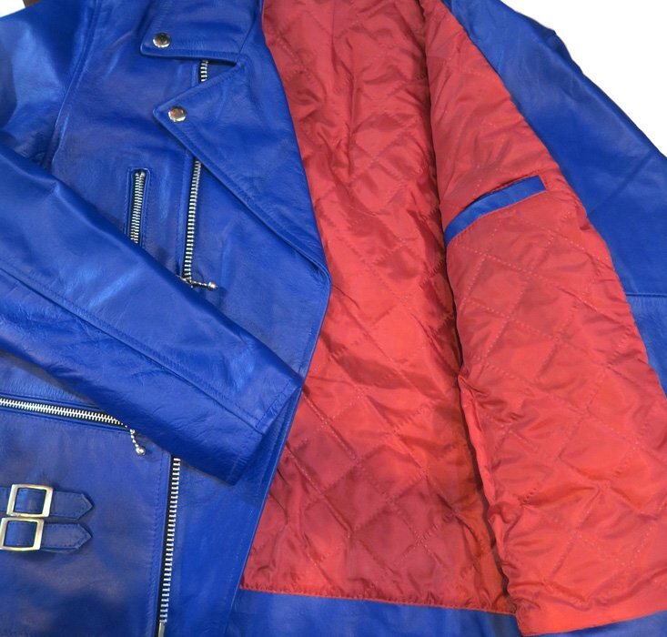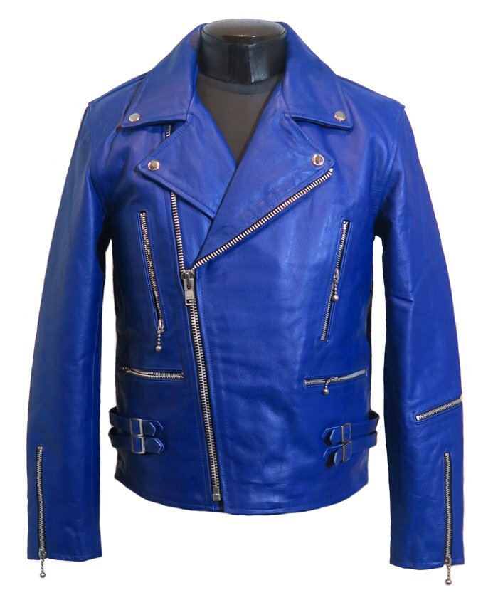5Lサイズ ビッグサイズ UKライダース 本革ジャケット 青 ブルー 3547 メンズ 革ジャン 大きなサイズ バッファローレザー ロンジャン