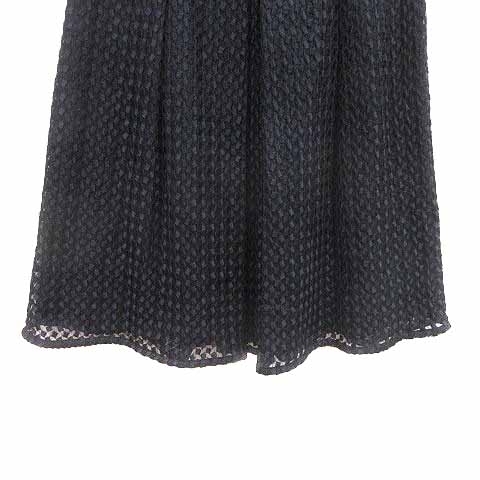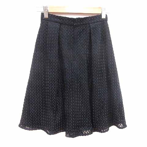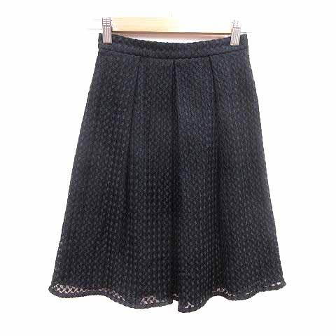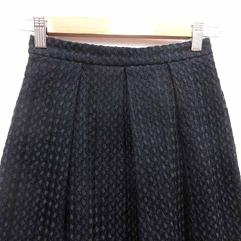 23区 オンワード樫山 フレアスカート ひざ丈 ツイード 刺しゅう 30 XS 黒 ブラック 紺 ネイビー /YK レディース