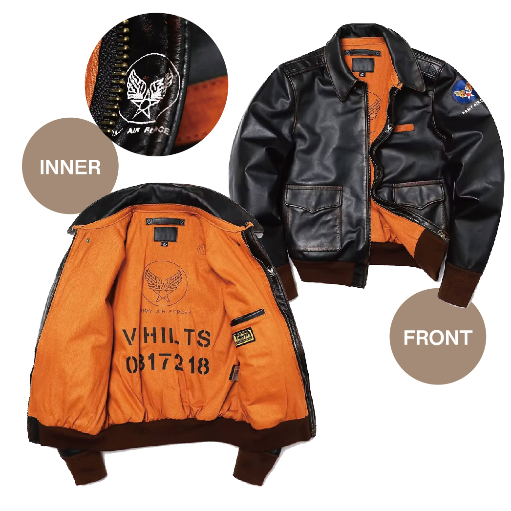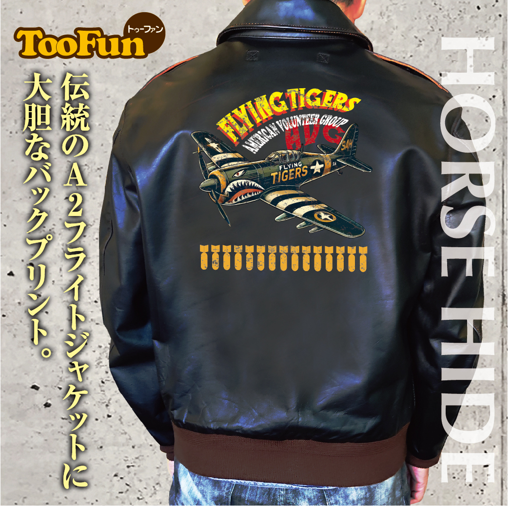 A2ジャケットは、秋冬のカジュアルスタイルにぴったりのユニセックスアウターです。ホースハイドを使用したこのフライトジャケットは、耐久性と高級感を兼ね備えています。背面にはアメリカ合衆国義勇軍「フライングタイガース」の大胆なバックプリントが施され、ミリタリーコーデに個性をプラス。オリジナルデザインが魅力で、日中戦争時代の歴史を感じさせる一着です。※画像はイメージとなり、実際とは多少異なりますので予めご了承ください。※実際にお持ちのジャケットとサイズ表をよくご確認の上ご購入ください。※受注生産となるため、返品、交換はご遠慮ください。※料金は1枚での価格となっております。