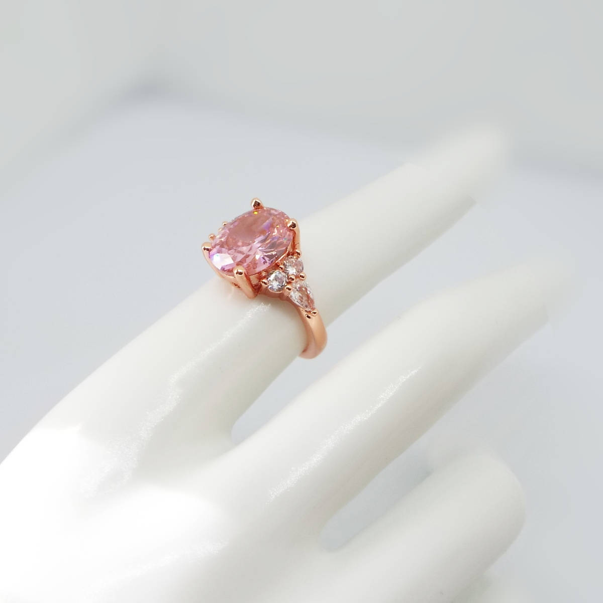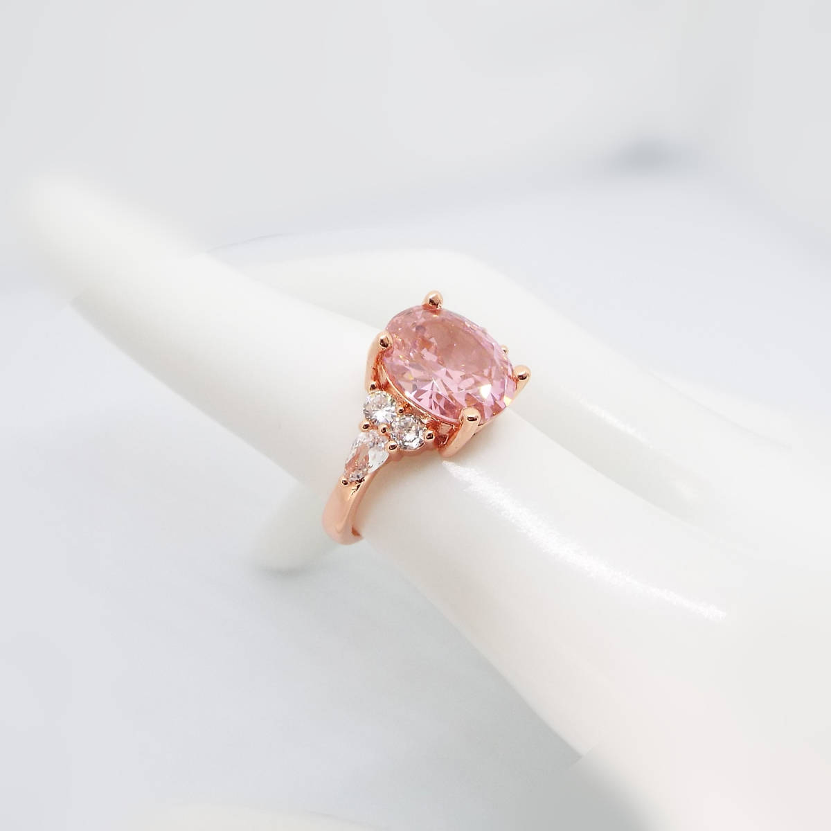 S925 大粒 ピンクジルコニア ローズゴールドリング 指輪