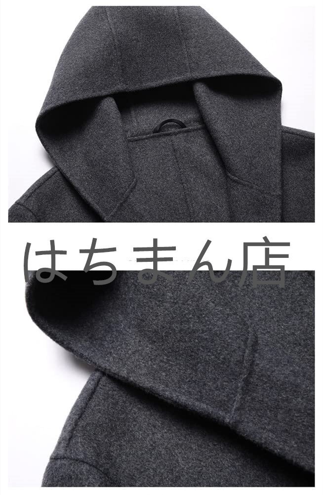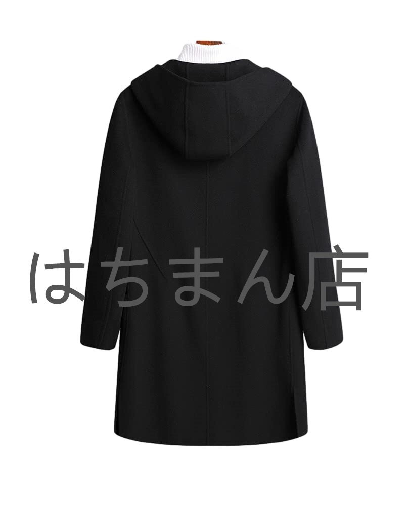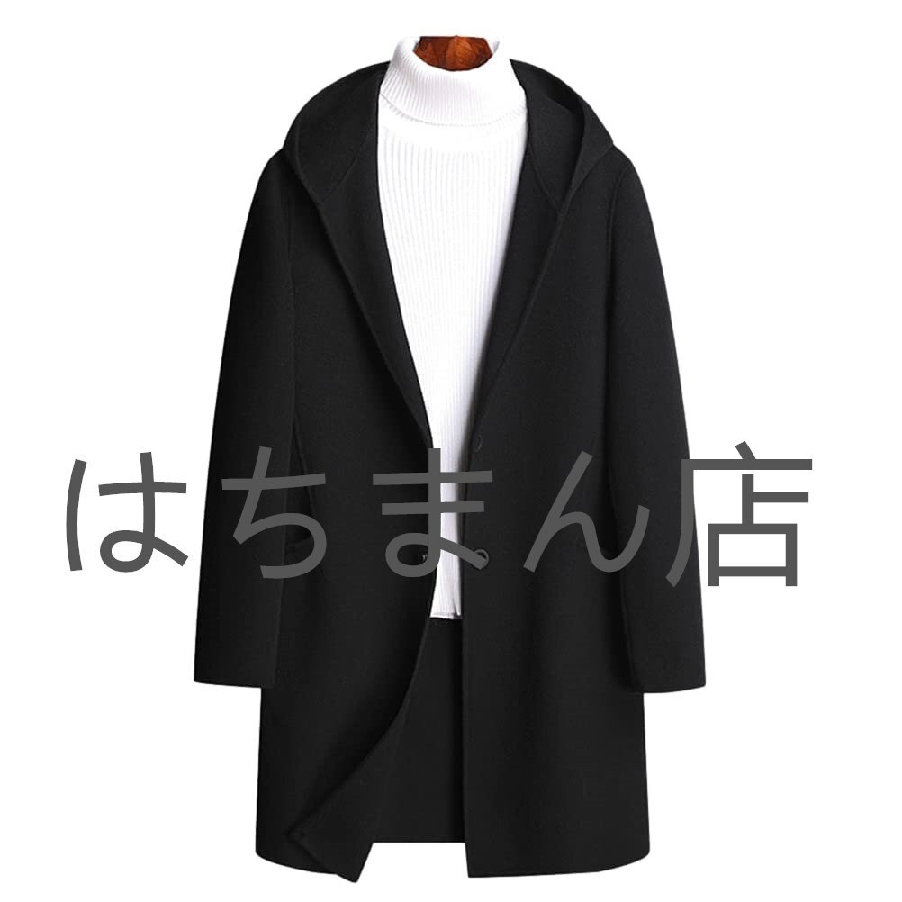 ウールコート メンズ ロングコート フード付き オーバーコート ジャケット コート アウター カッコイイ 冬 冬服 秋 秋服 ブラック M-3XL