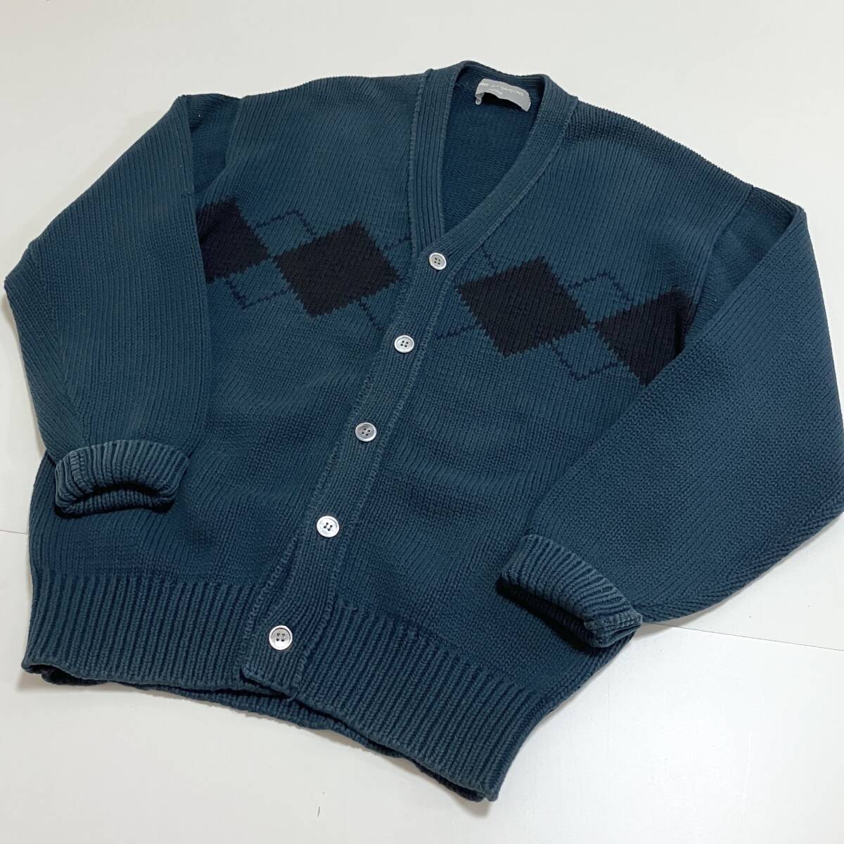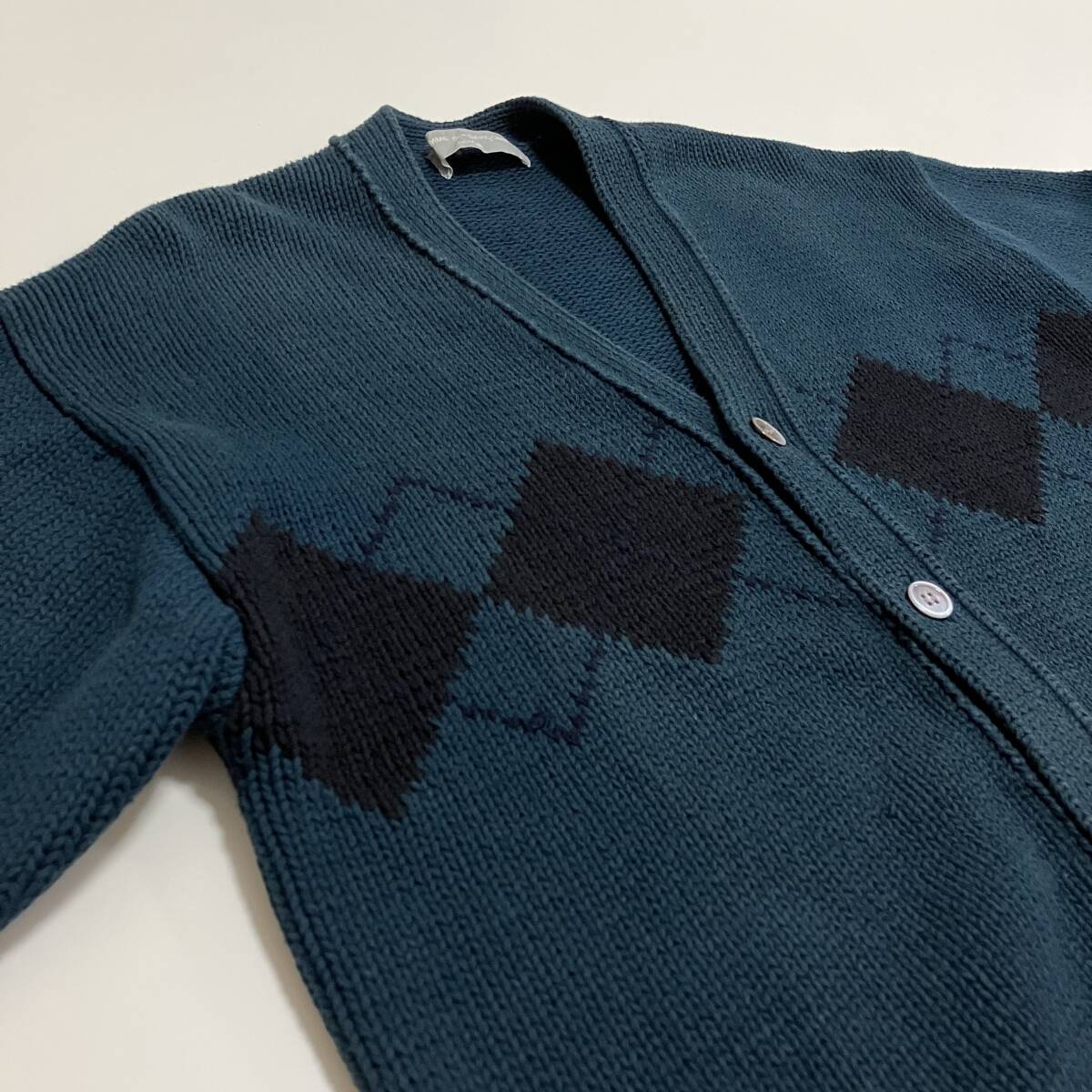 80s COMME des GARCONS HOMME アーガイル コットン ニット カーディガン 深緑