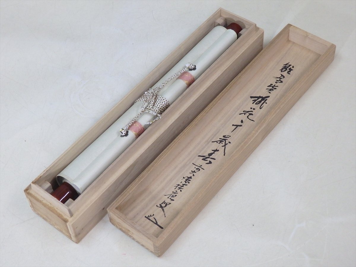 ★前大徳 宝林寺住職 福本積應 肉筆【掛軸『立雛画賛 桃花千歳春』共箱】紙本 幅31×全長172.8cm 一行書 茶道具
