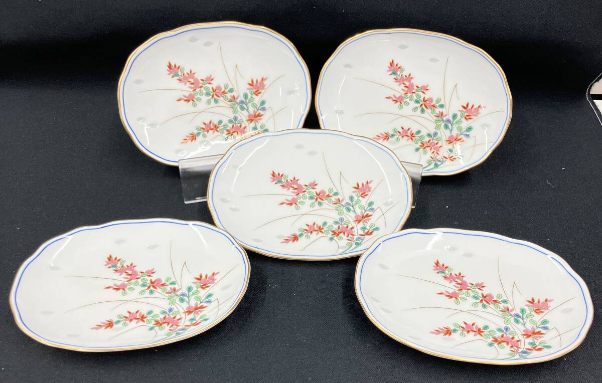 其泉皿 5枚セット 金彩 ホタル手草花文 透かし