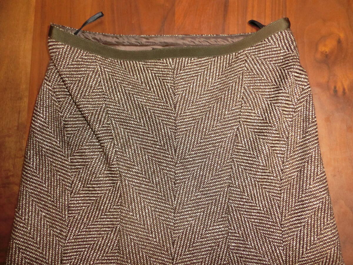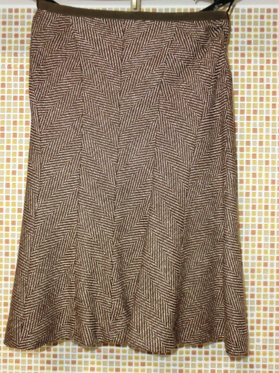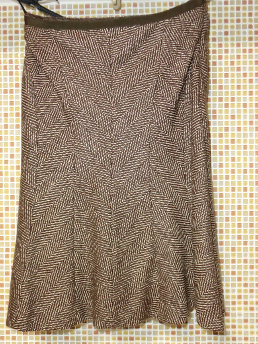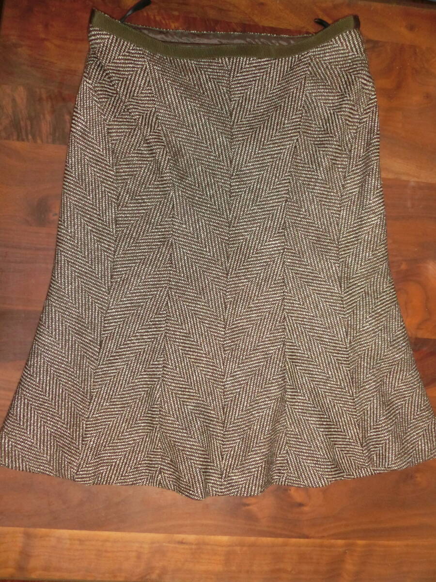 アンタイトル マーメイドラインスカート M ヘリンボーン ブラウン
