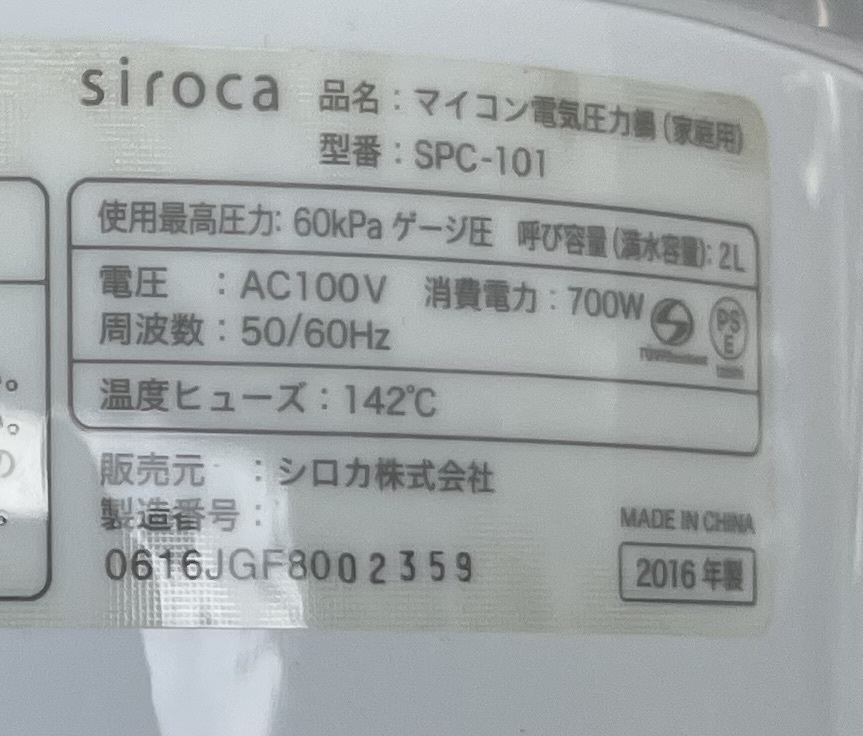 siroca SPC-101 メニュによりオート調理対応電気式圧力鍋現状渡し
