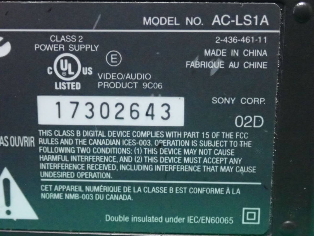 出品商品は『SONY ソニー 純正 ACアダプター AC-LS1A -643』です。
