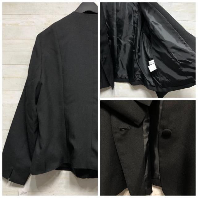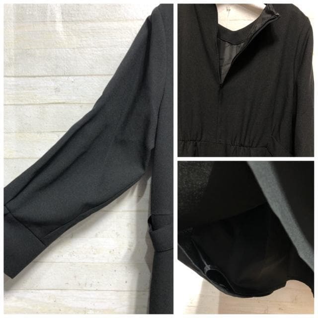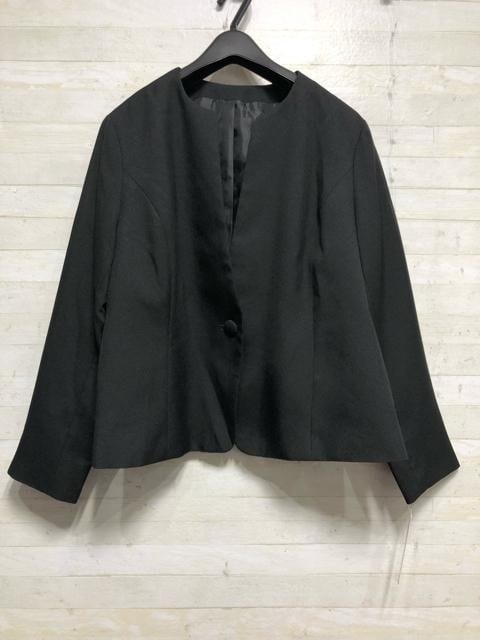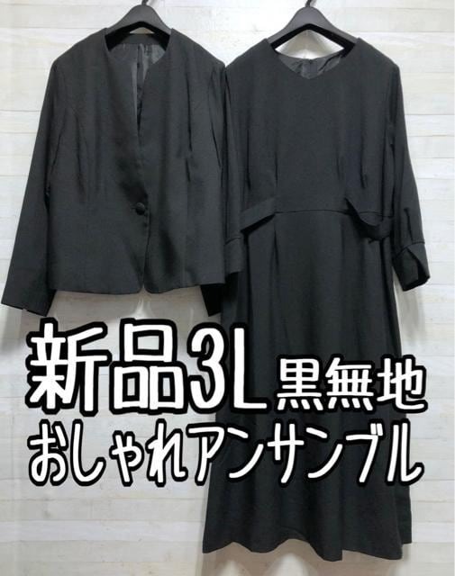 新品☆3L黒系無地8分袖フレアワンピ&キーネックジャケット♪アンサンブル〇A874
